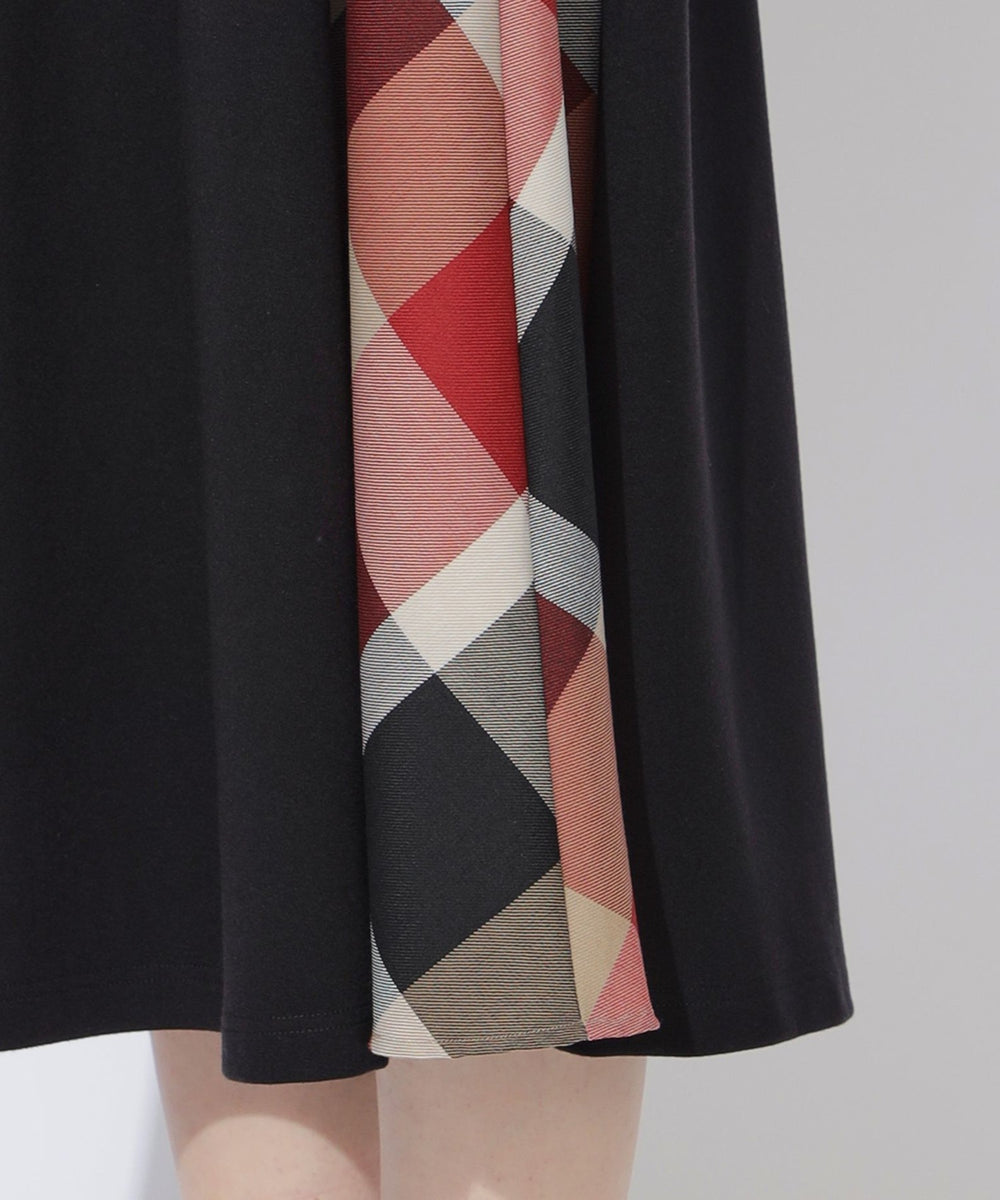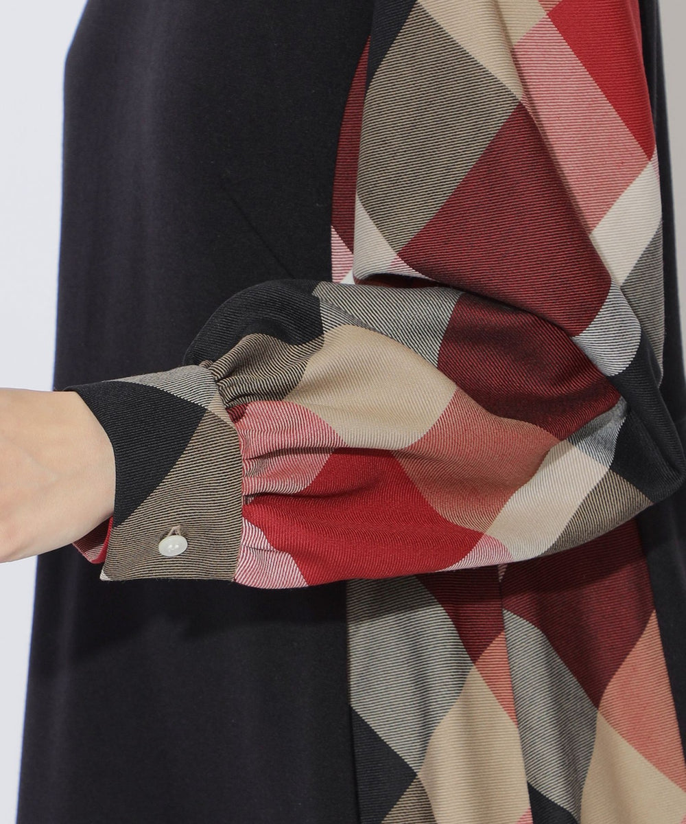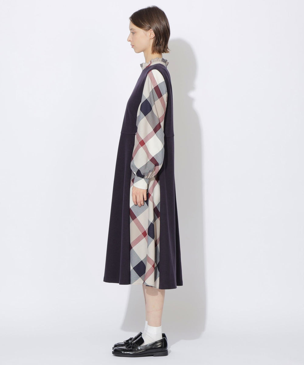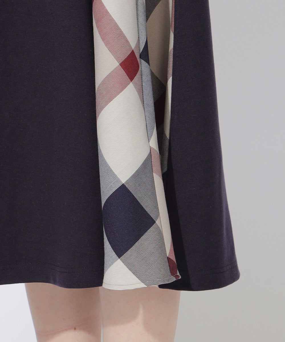 - 【WEB限定】ウールミックスストレッチポンチパーシャルチェックドレス