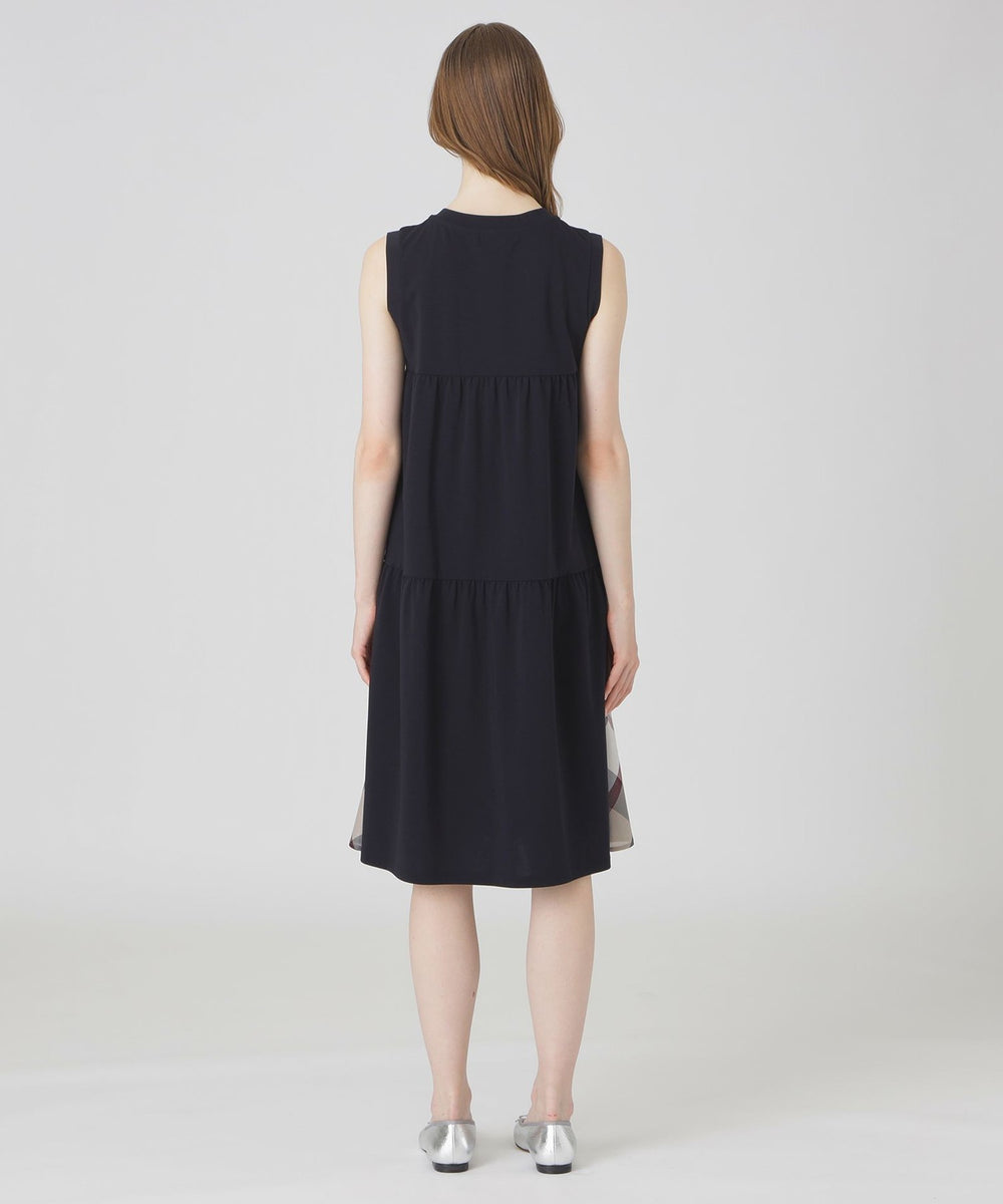 ◆クレストブリッジチェック切替がポイントのティアードドレス