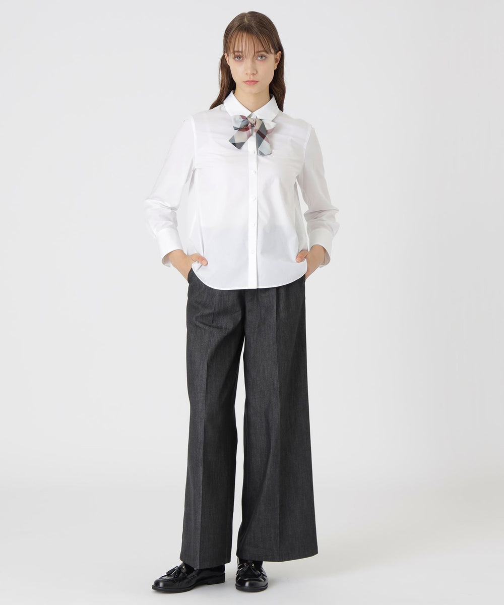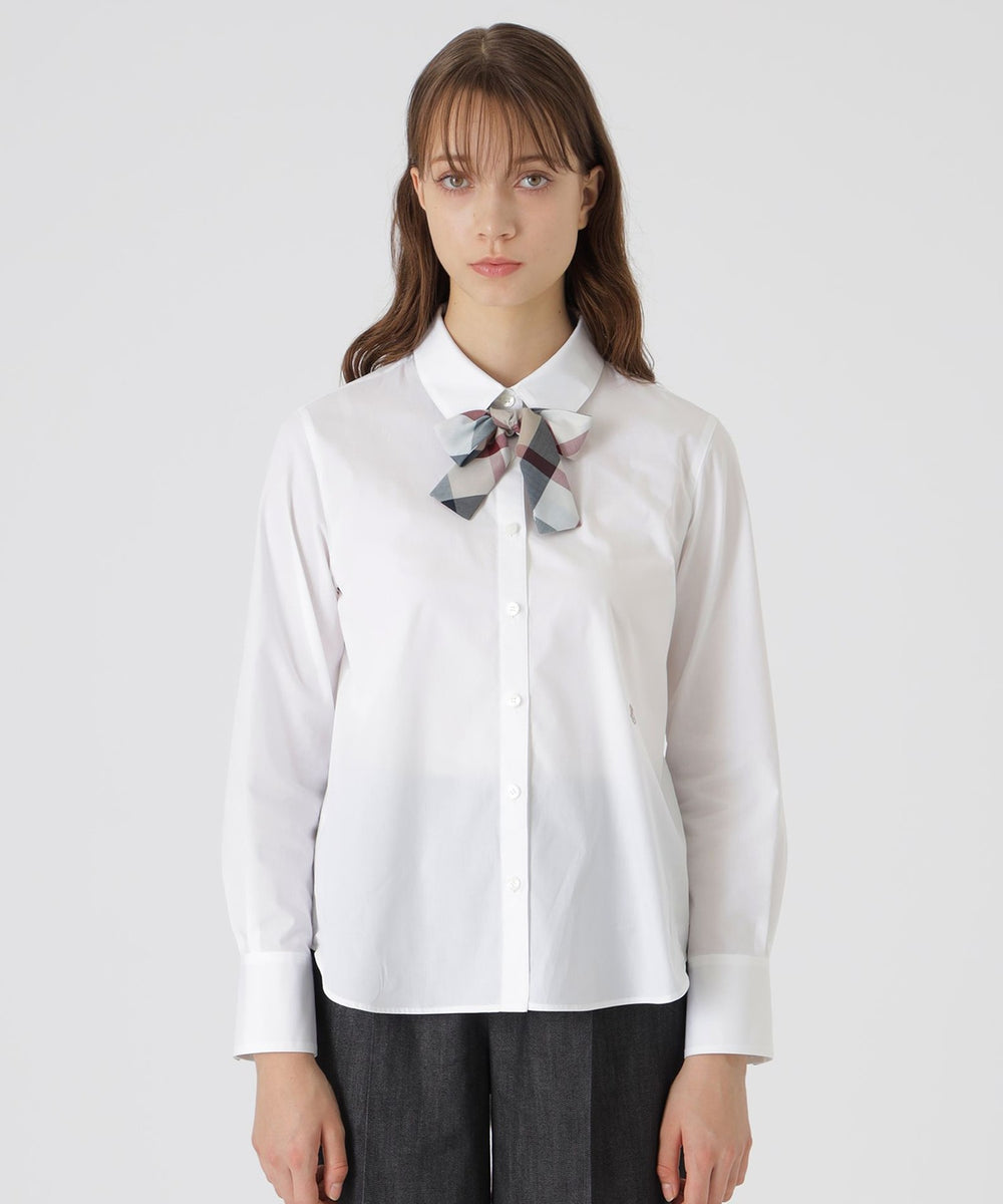 クレストブリッジチェックのリボンタイがポイントのプレッピーなシャツです。