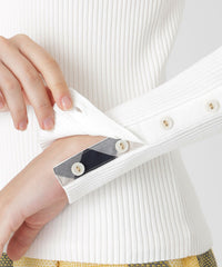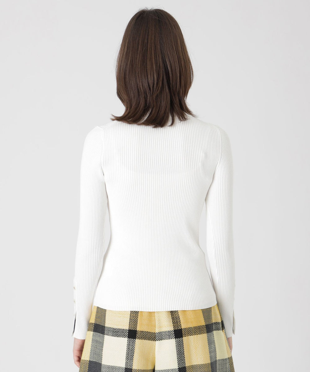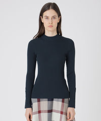 コンパクトなタイトシルエットのベーシックなリブハイネックプルオーバーです。