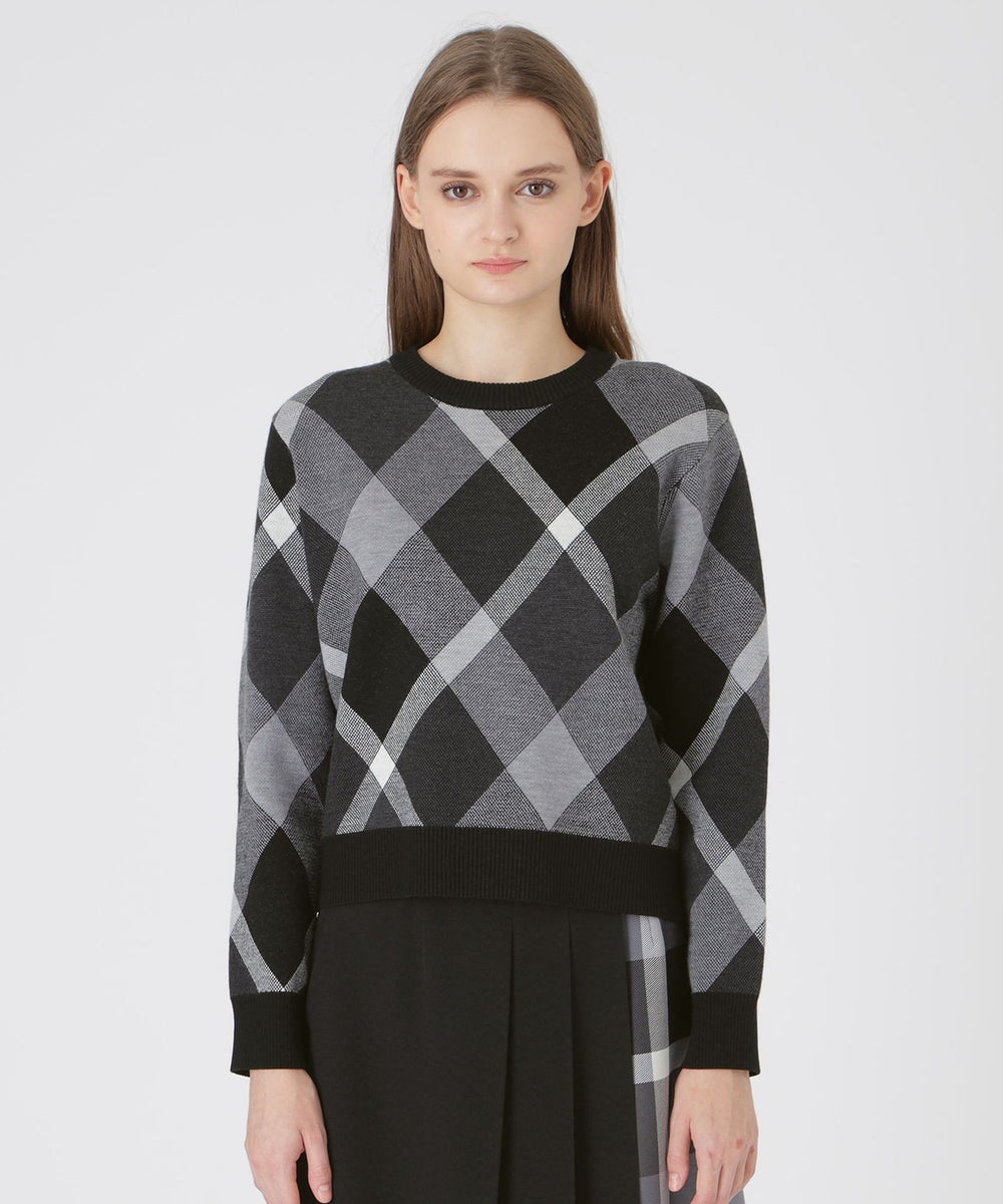 ◆クレストブリッジチェックが華やかなニットプルオーバー