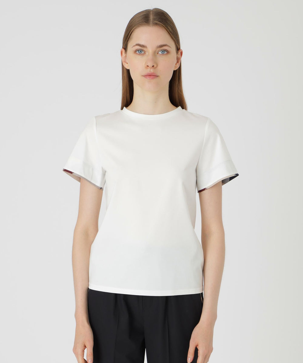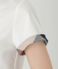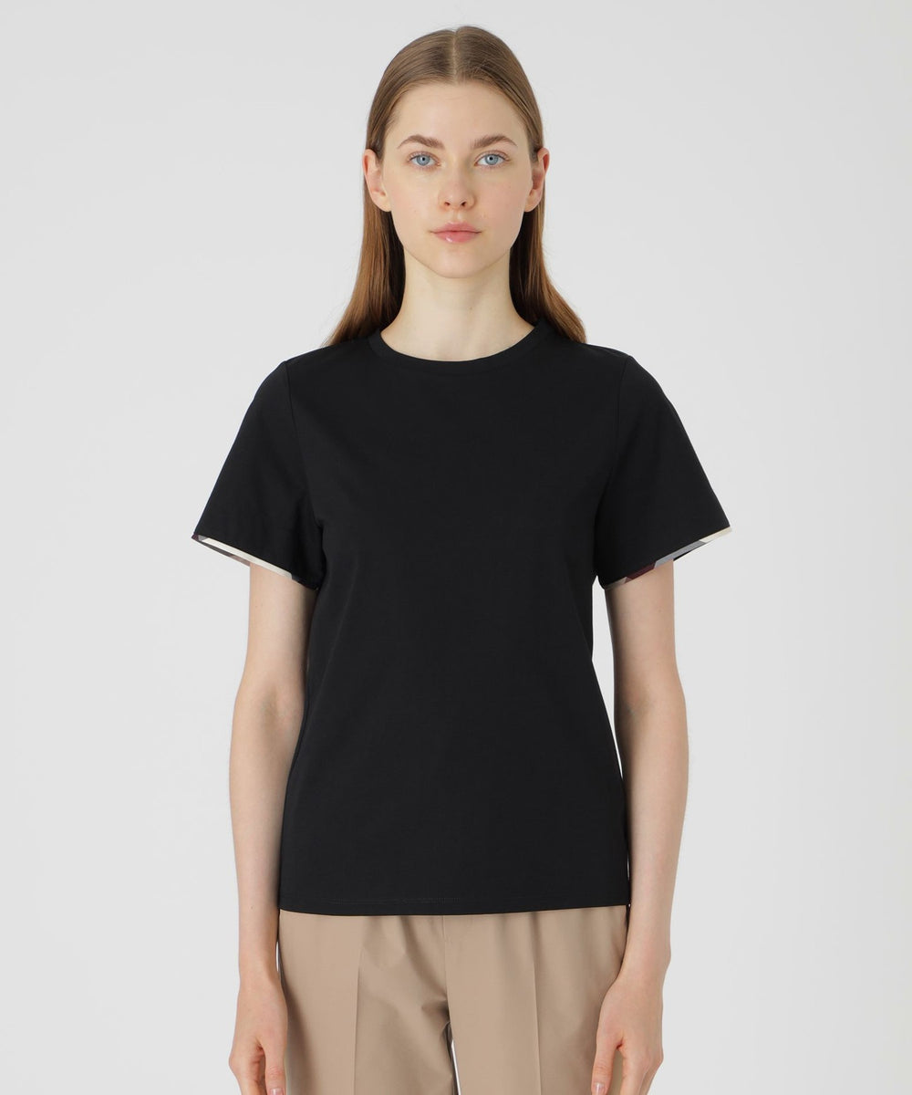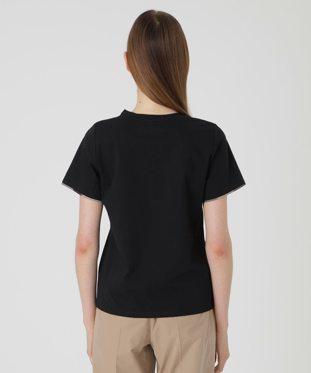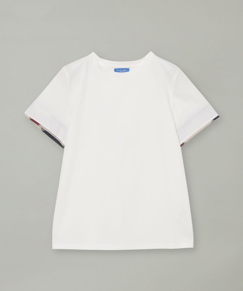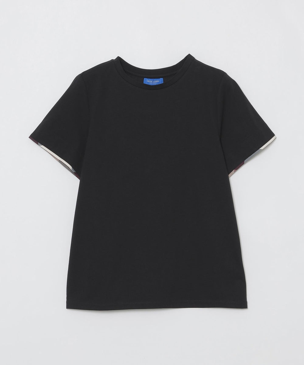 - ピマコットンプレーティング天竺袖口チェックTシャツ