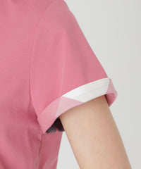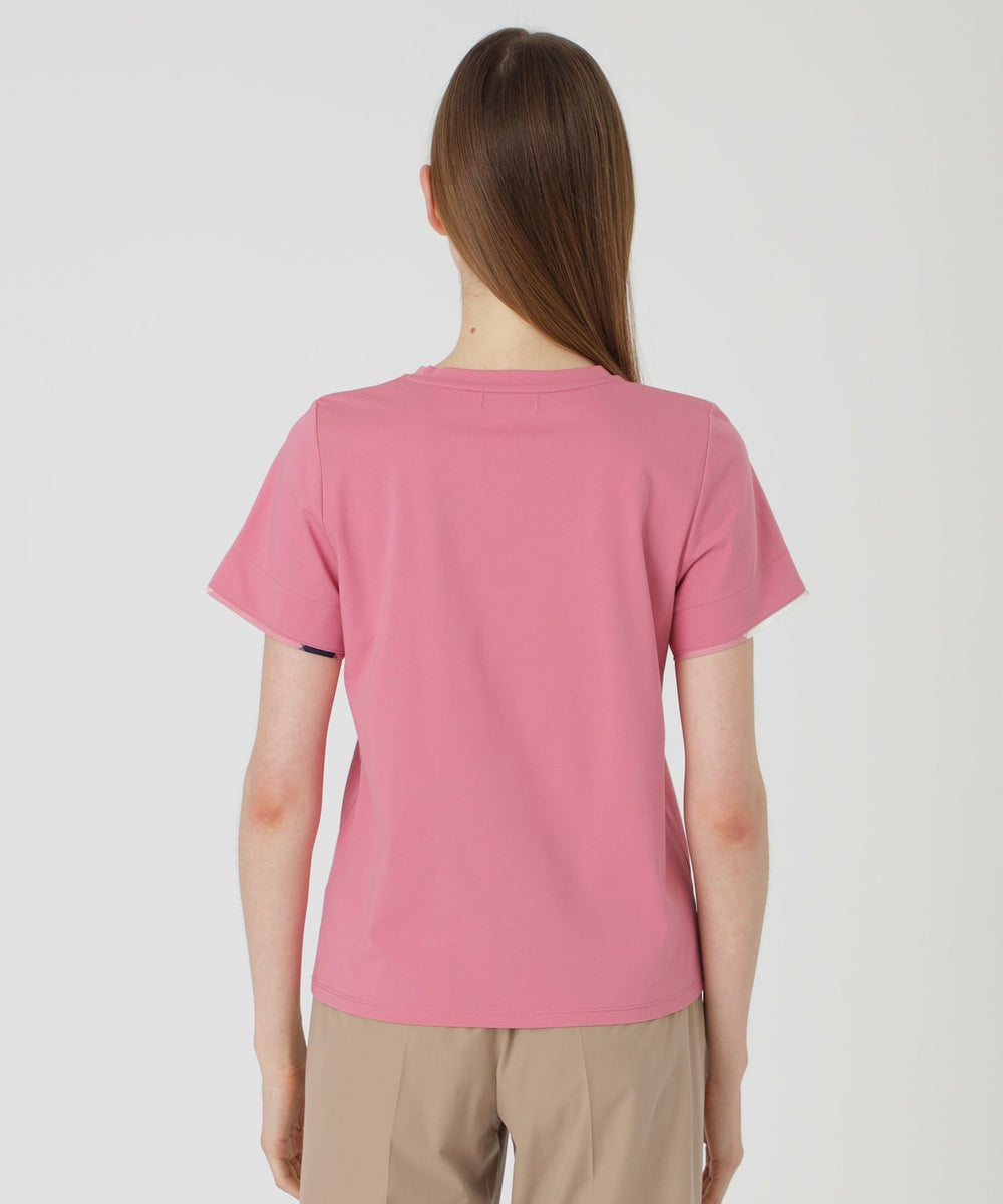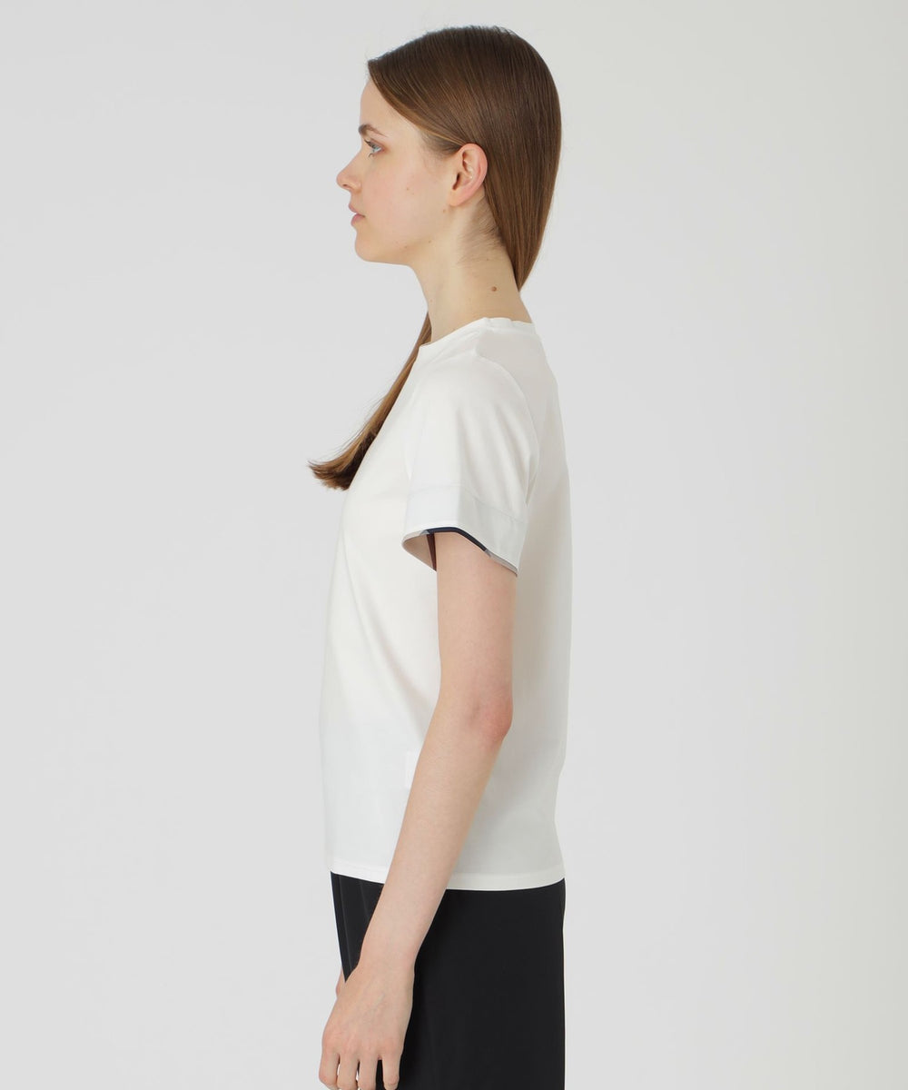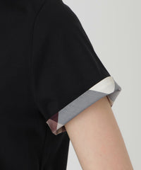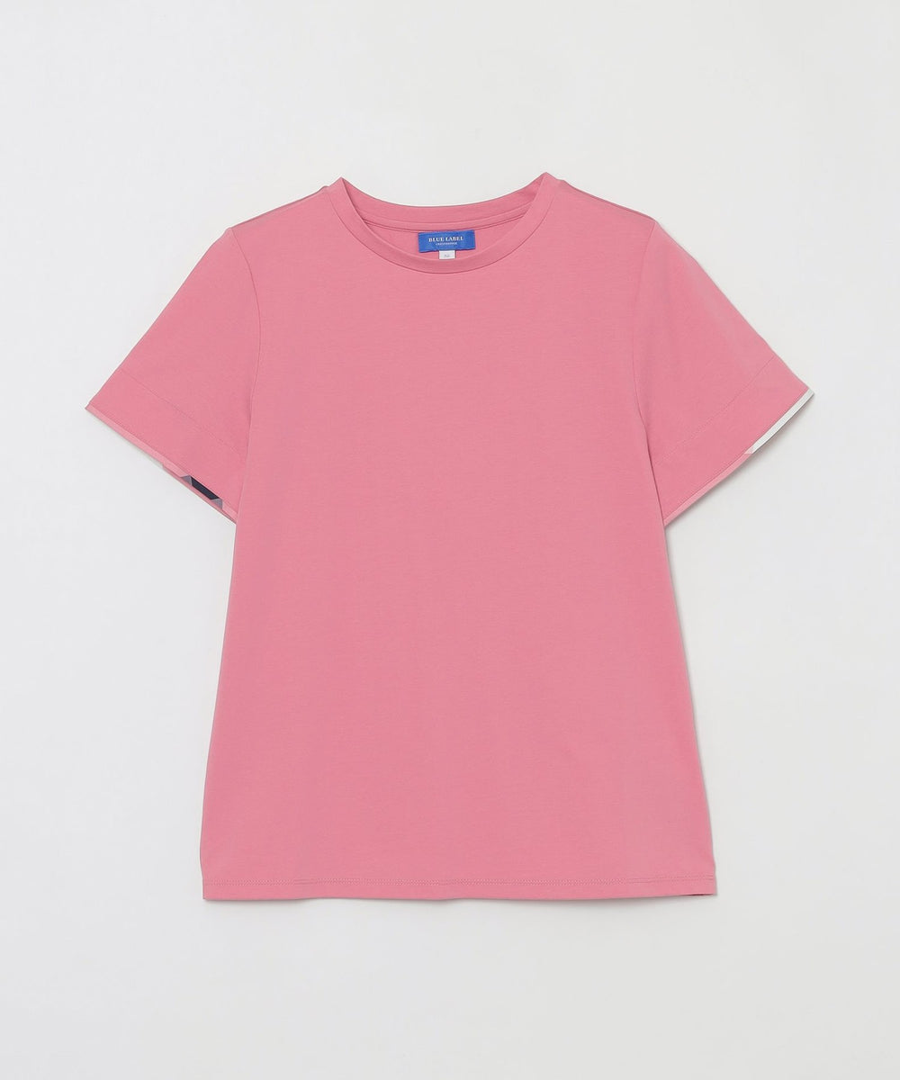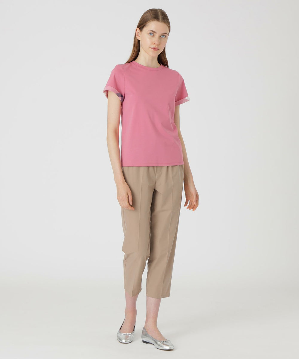 - ピマコットンプレーティング天竺袖口チェックTシャツ