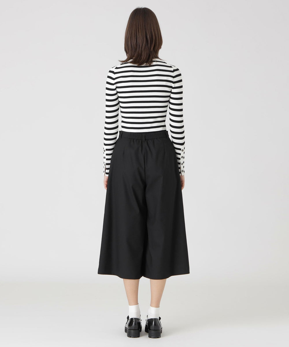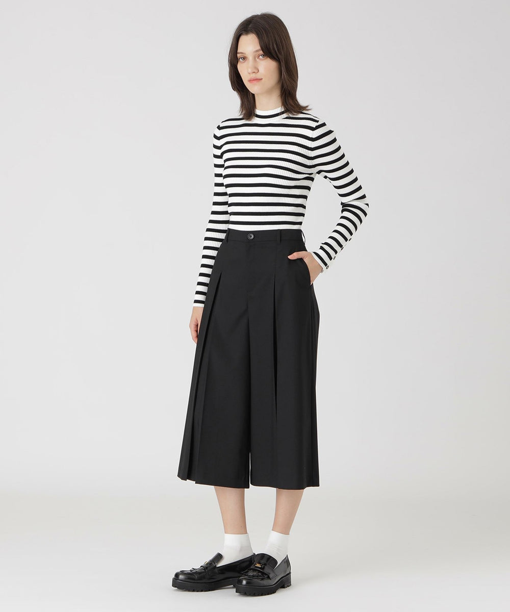センターにあしらったインパーテッドプリーツがポイントのガウチョパンツです。