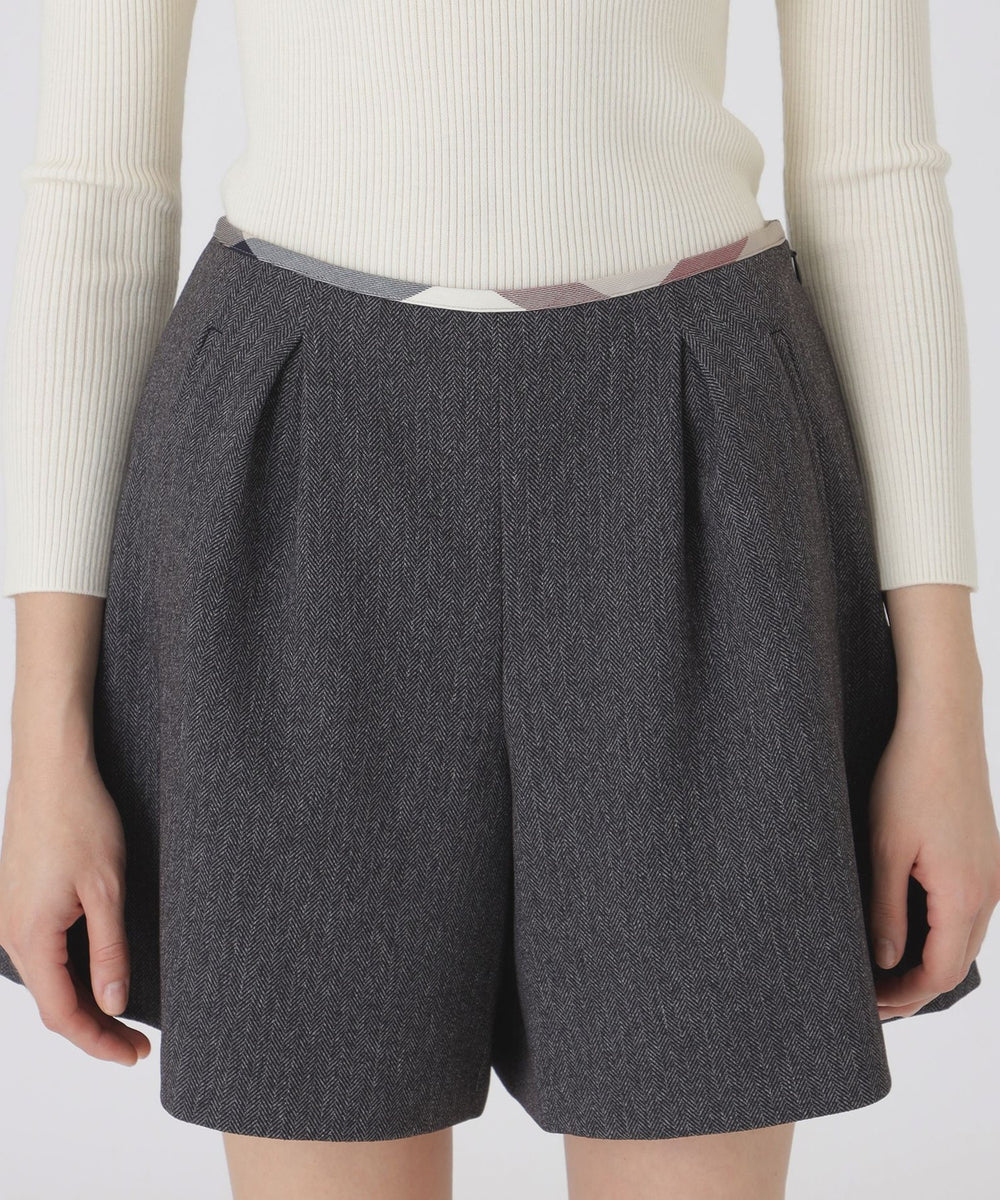 ウールライクなへリンボン素材を使用したキュロットパンツです。