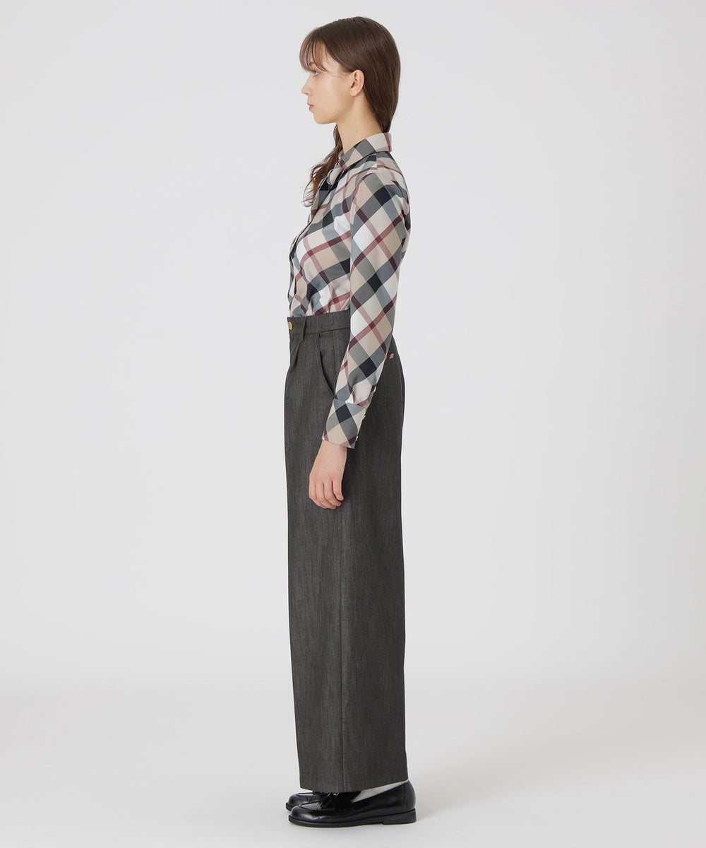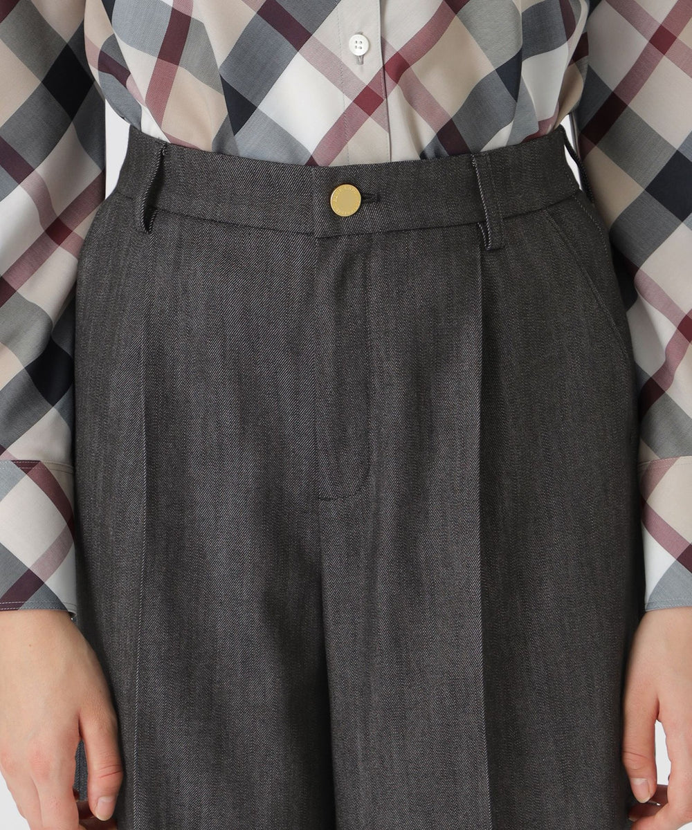 ハイウエストデザインが圧倒的な美脚シルエットを叶えます。足元次第で様々なスタイリングに対応可能な汎用性の高いアイテム。短めのトップスをとコーディネートするのが、旬なおすすめスタイルです。