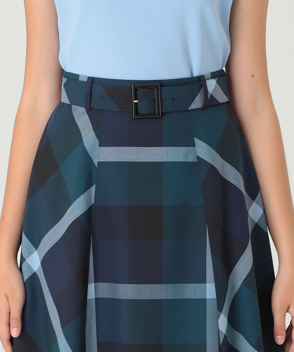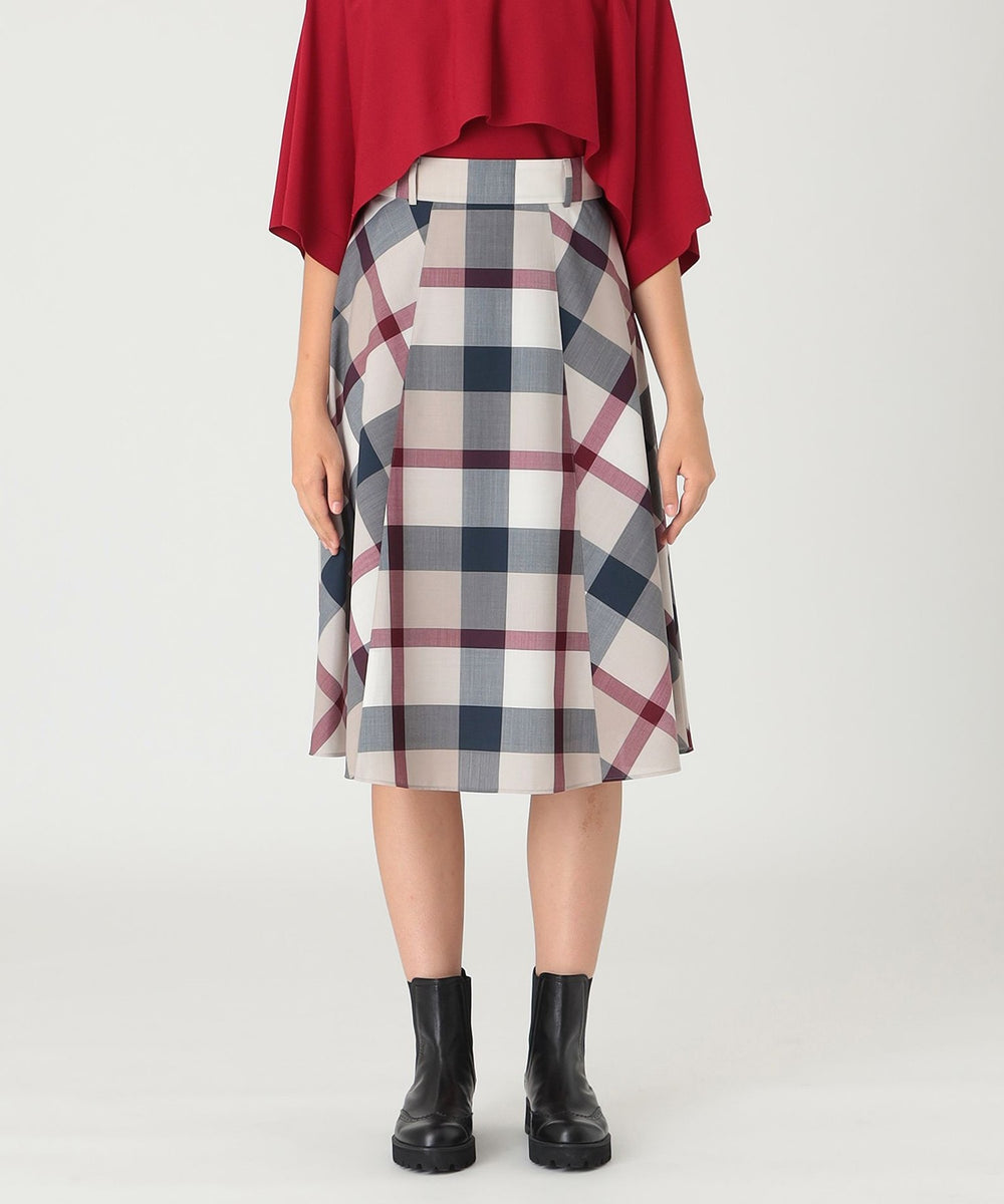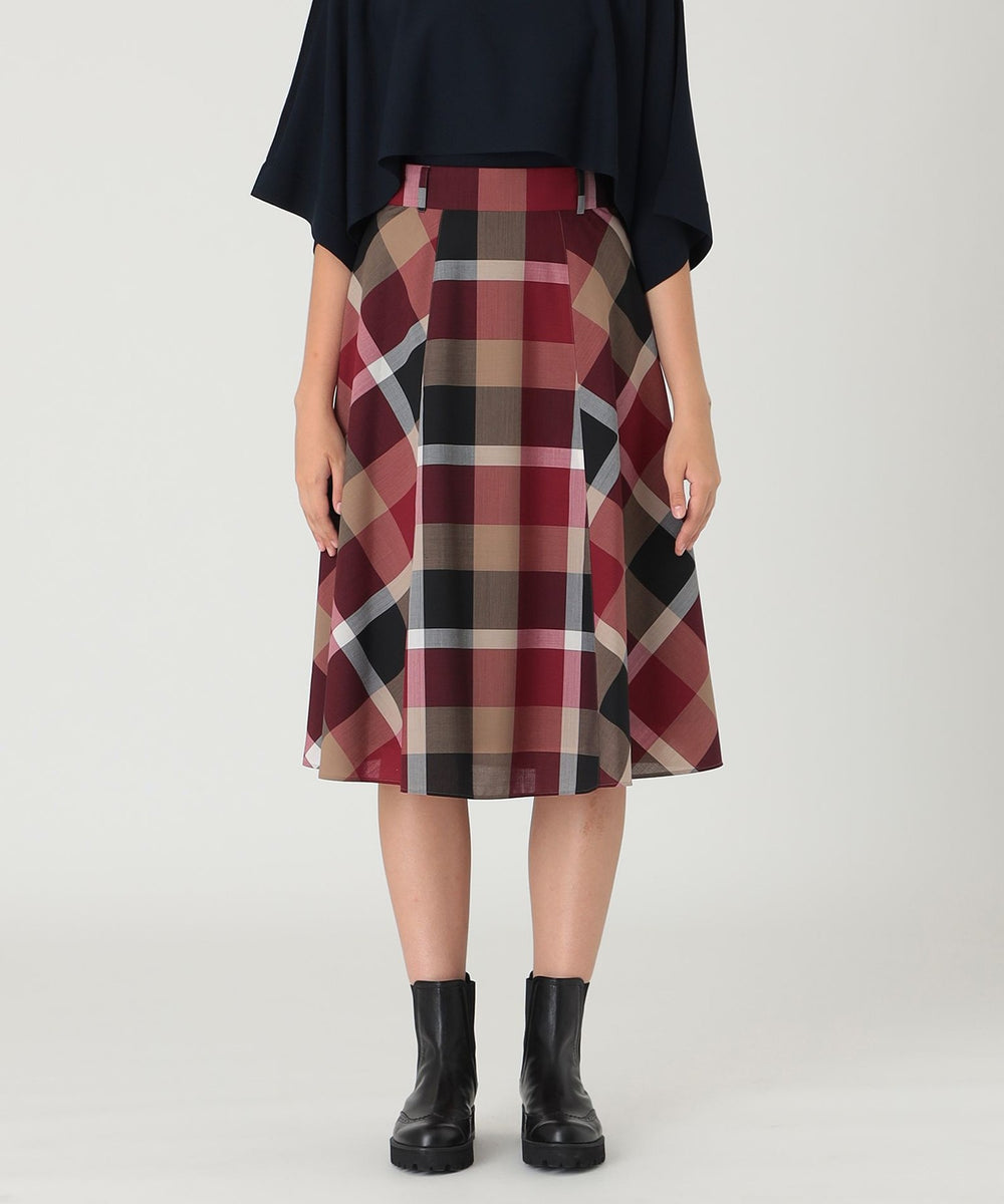 - クレストブリッジチェックウールポリエステルフレアスカート