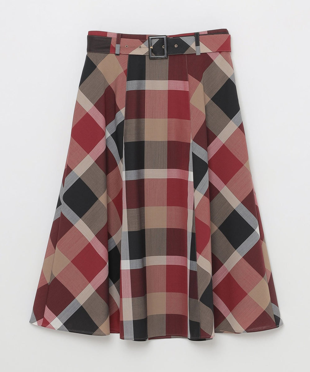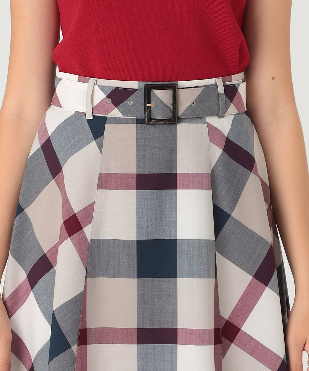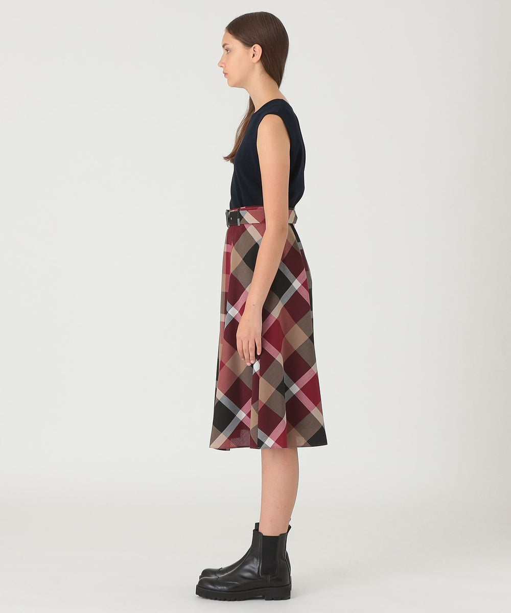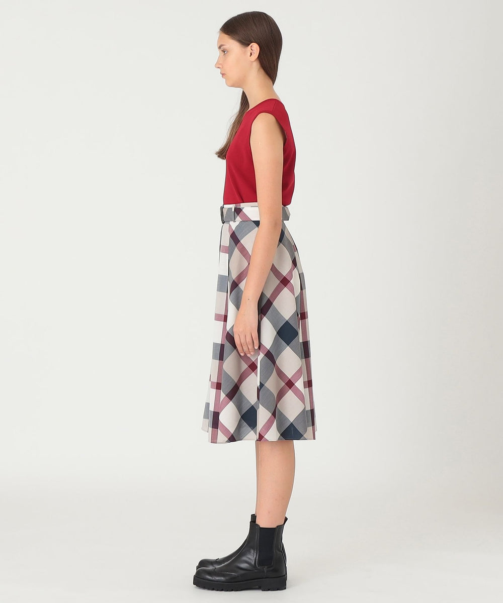 - クレストブリッジチェックウールポリエステルフレアスカート