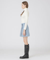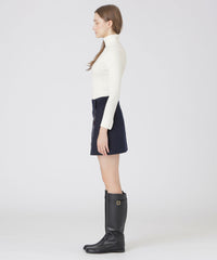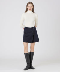 ミニ丈なのでタイツやロングブーツとのスタイリングがおすすめです。