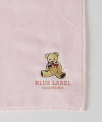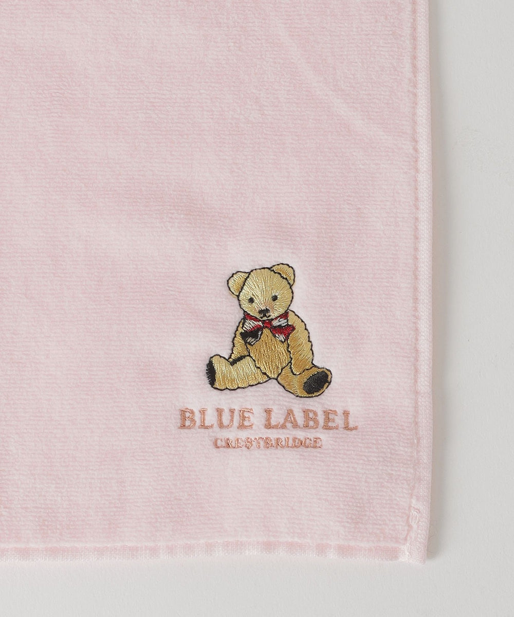 クレストブリッジチェック柄のリボンをつけたキュートなクマの刺しゅうがポイントのタオルハンカチです。