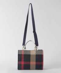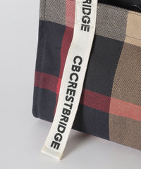 印象的なクレストブリッジチェック柄のコットンキャンバス生地に、ロゴテープハンドルがアクセントになっています。
