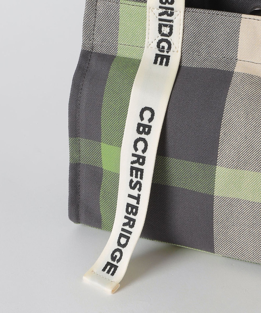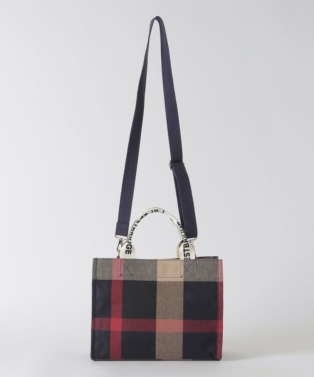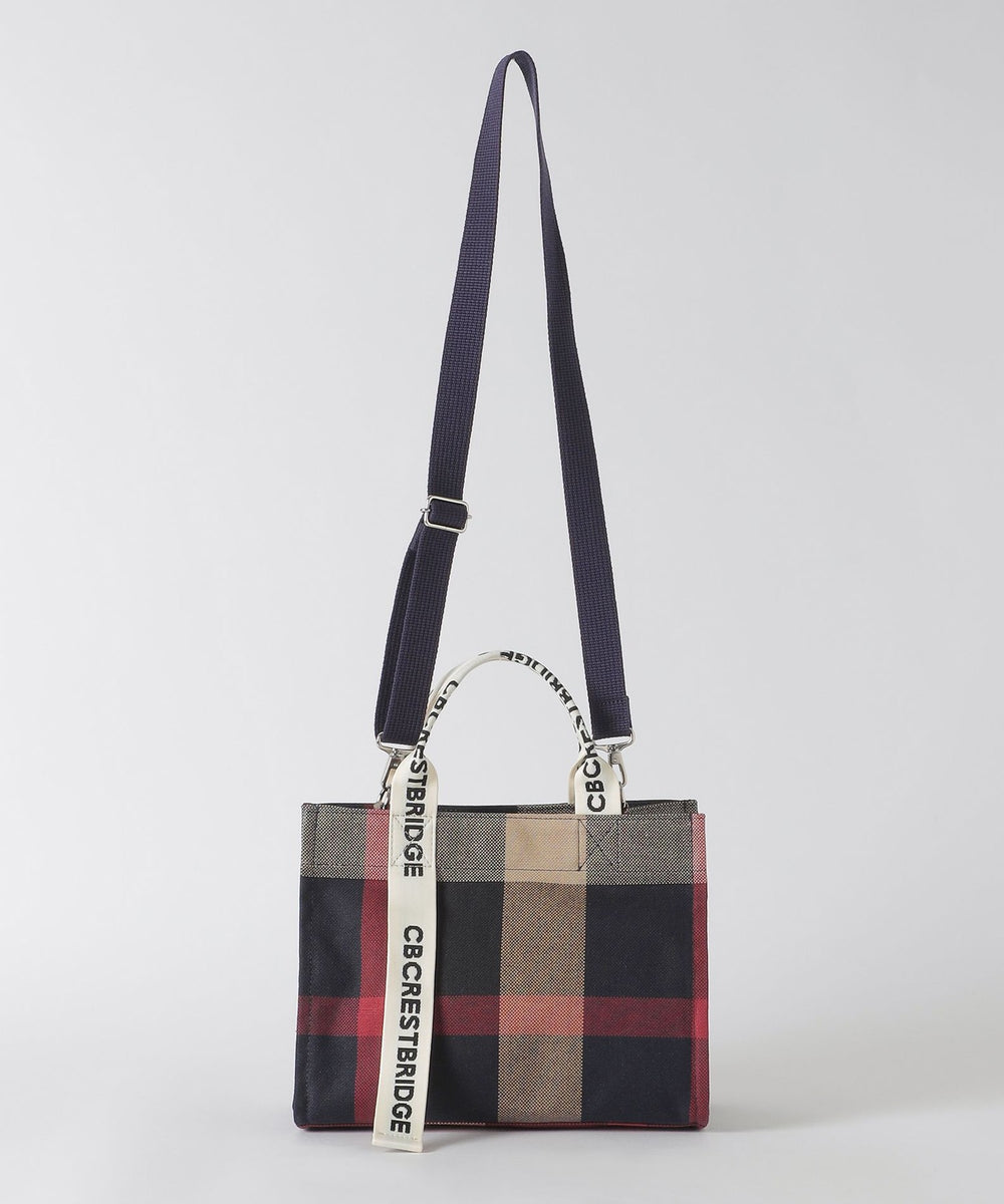 印象的なクレストブリッジチェック柄のコットンキャンバス生地に、ロゴテープハンドルがアクセントになっています。