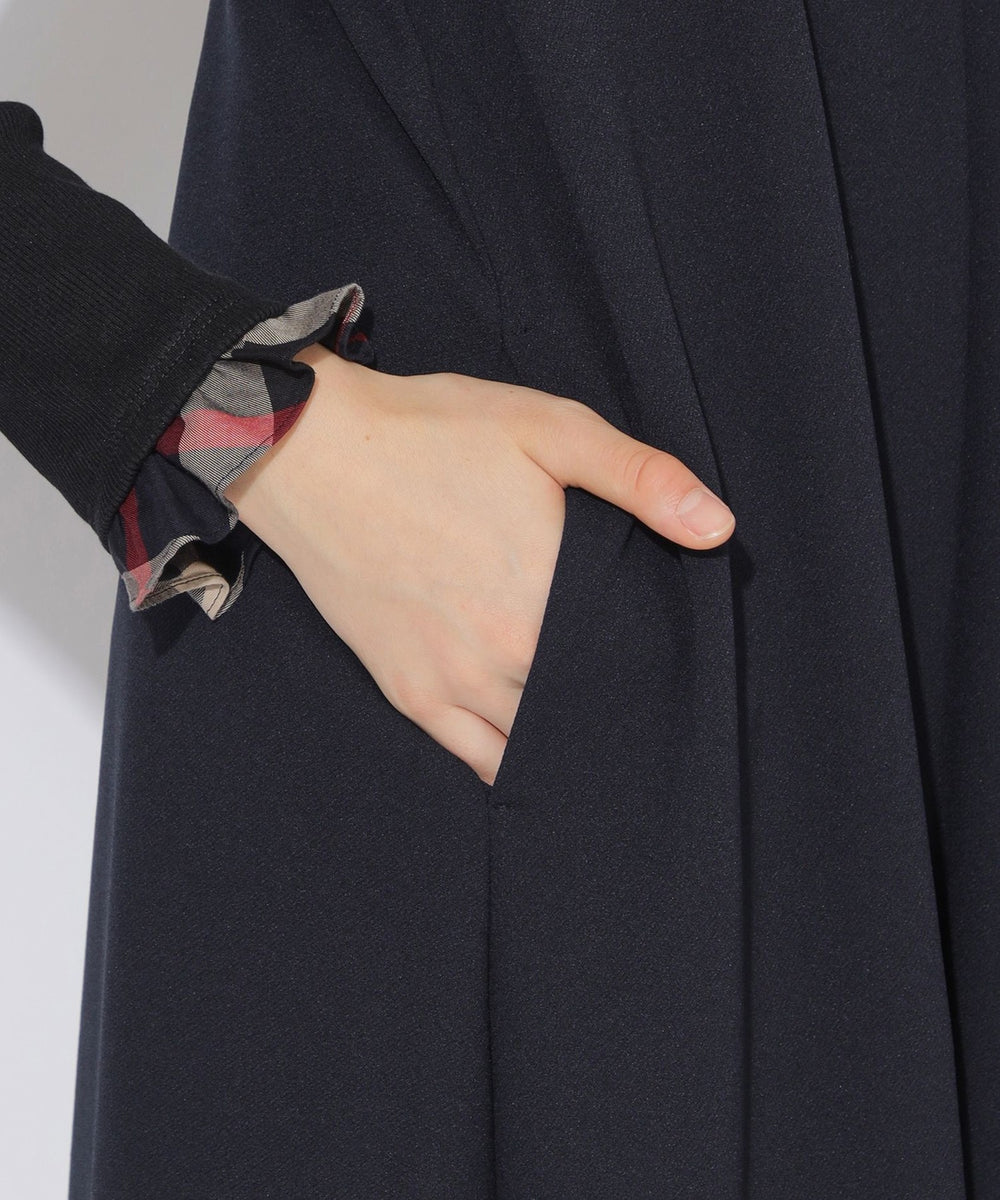 背中側のクレストブリッジチェックの切り替えが歩くたびに華やかなワンピースです。