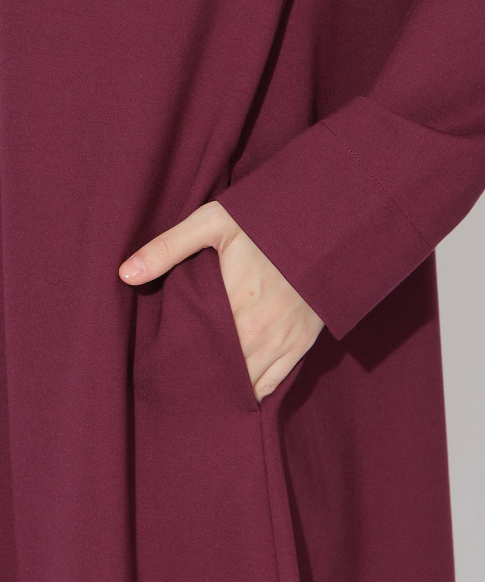 バストから裾にかけて緩やかに広がる程よいAラインシルエットが、身体のラインを拾わず、ふんわりと自然にカバーします。