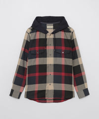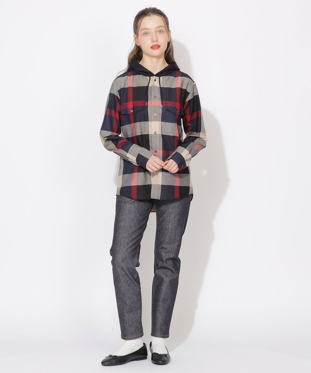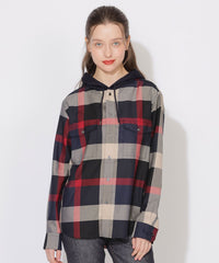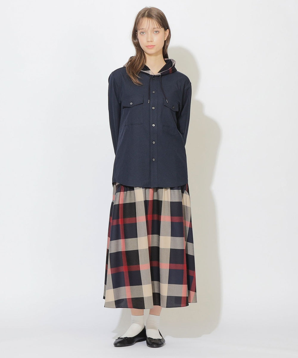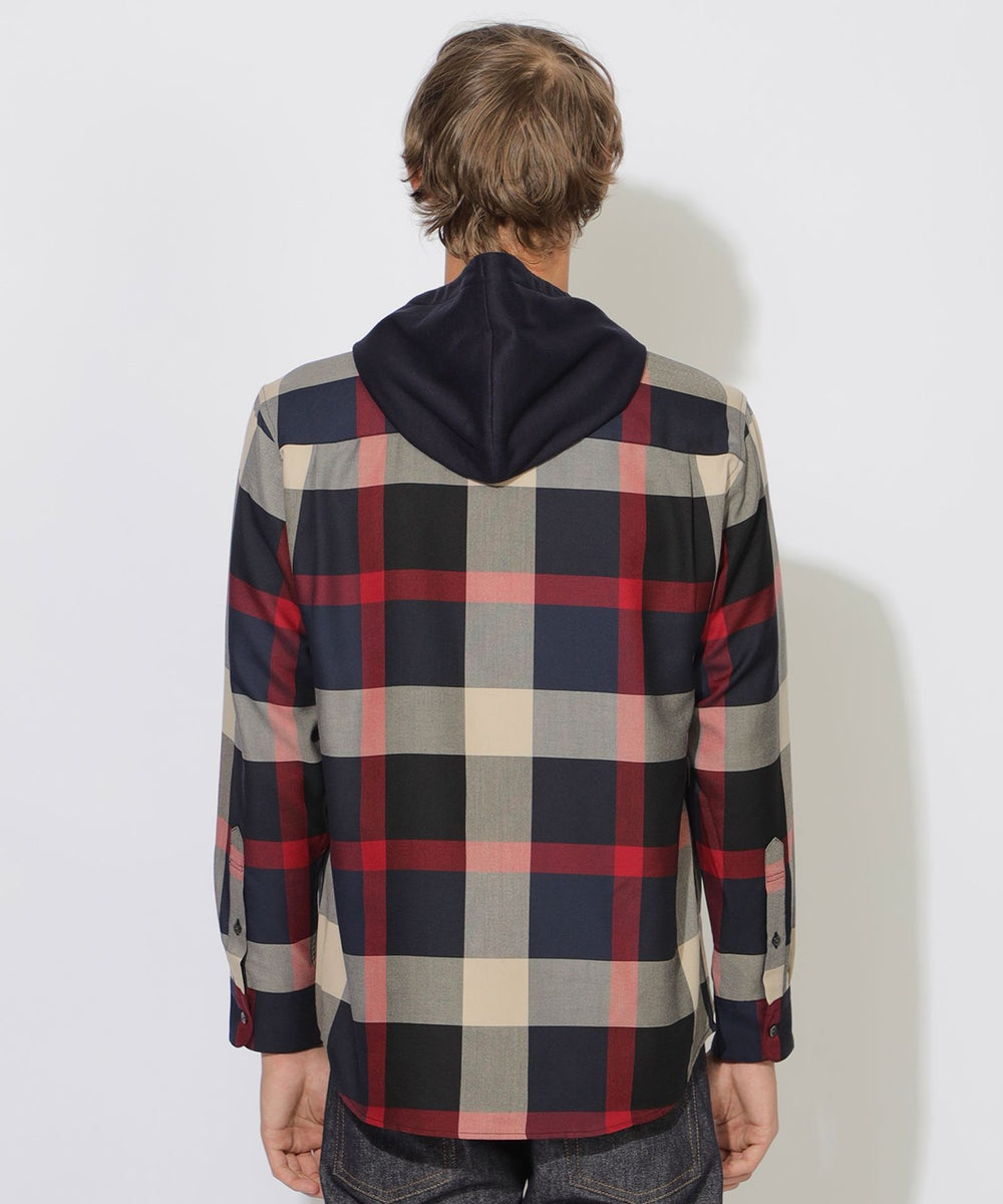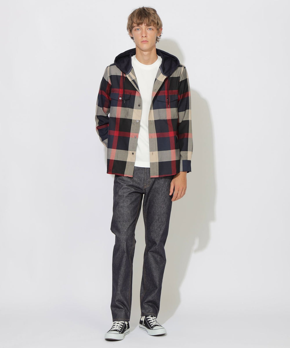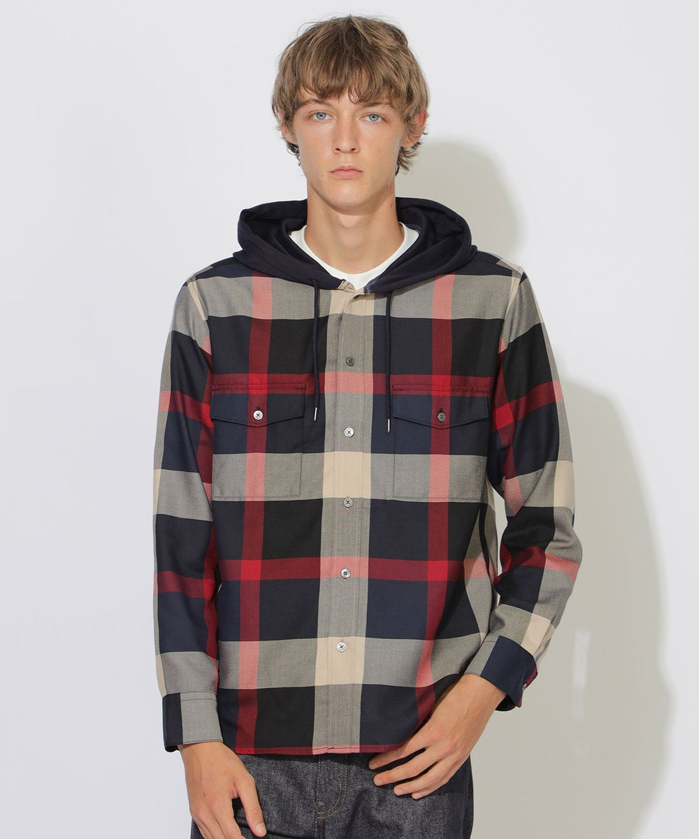 無地ベースにチェック柄のフードを配したさりげないアクセントモデル。