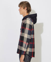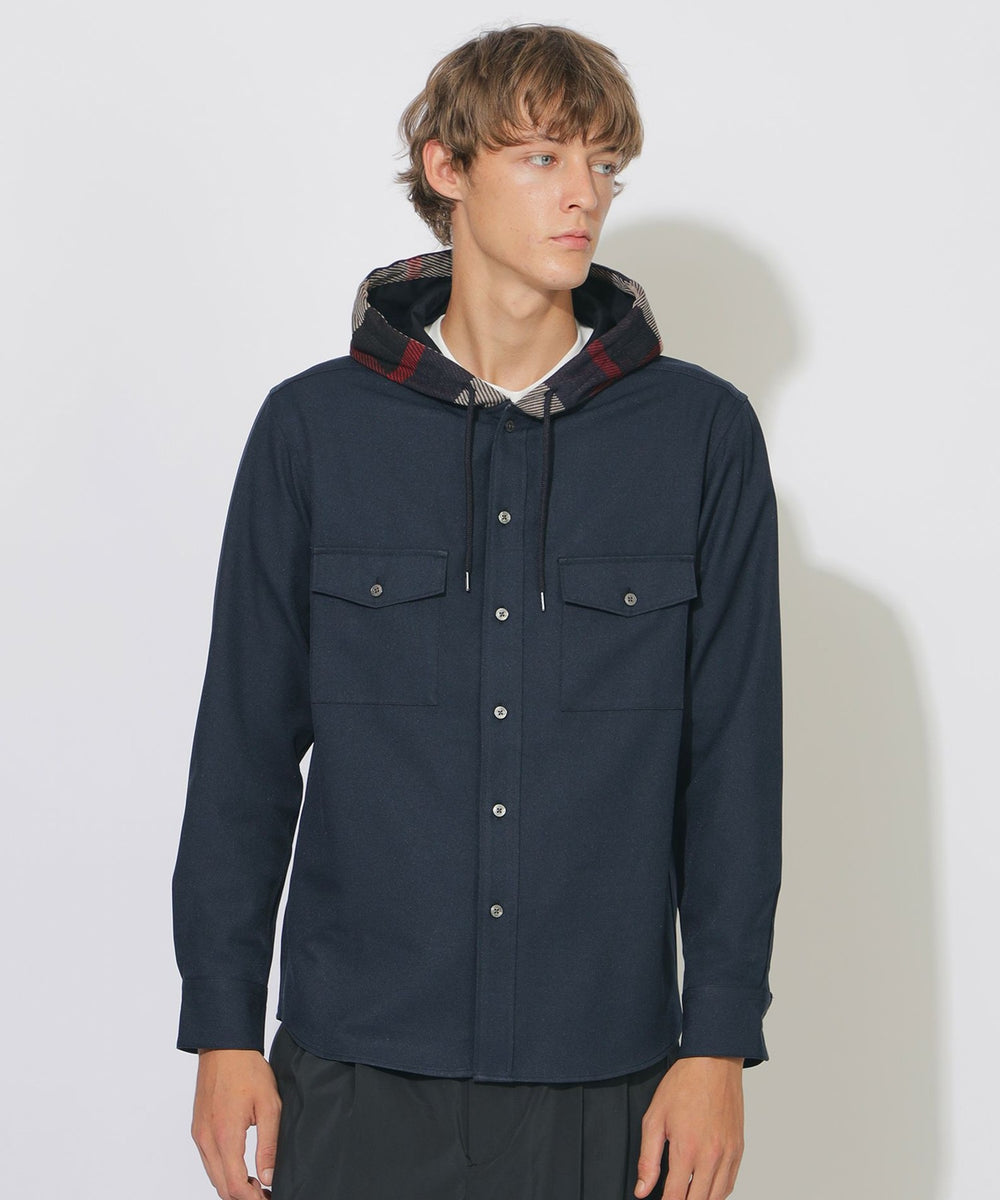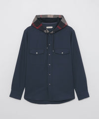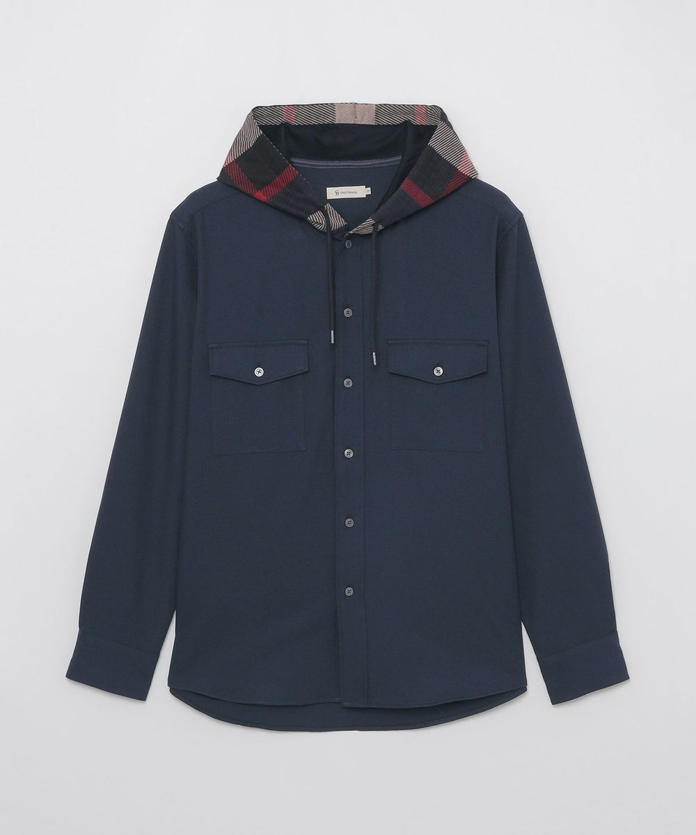 シャツ感覚でさらっと羽織れる、フード付きのライトアウターシャツです。