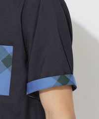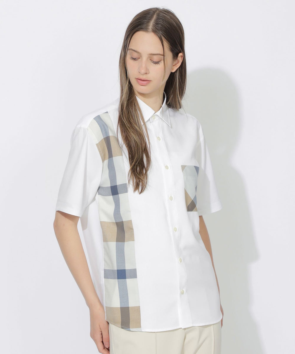 アイコニックなチェック柄を部分使いで取り入れたデザインシャツ。