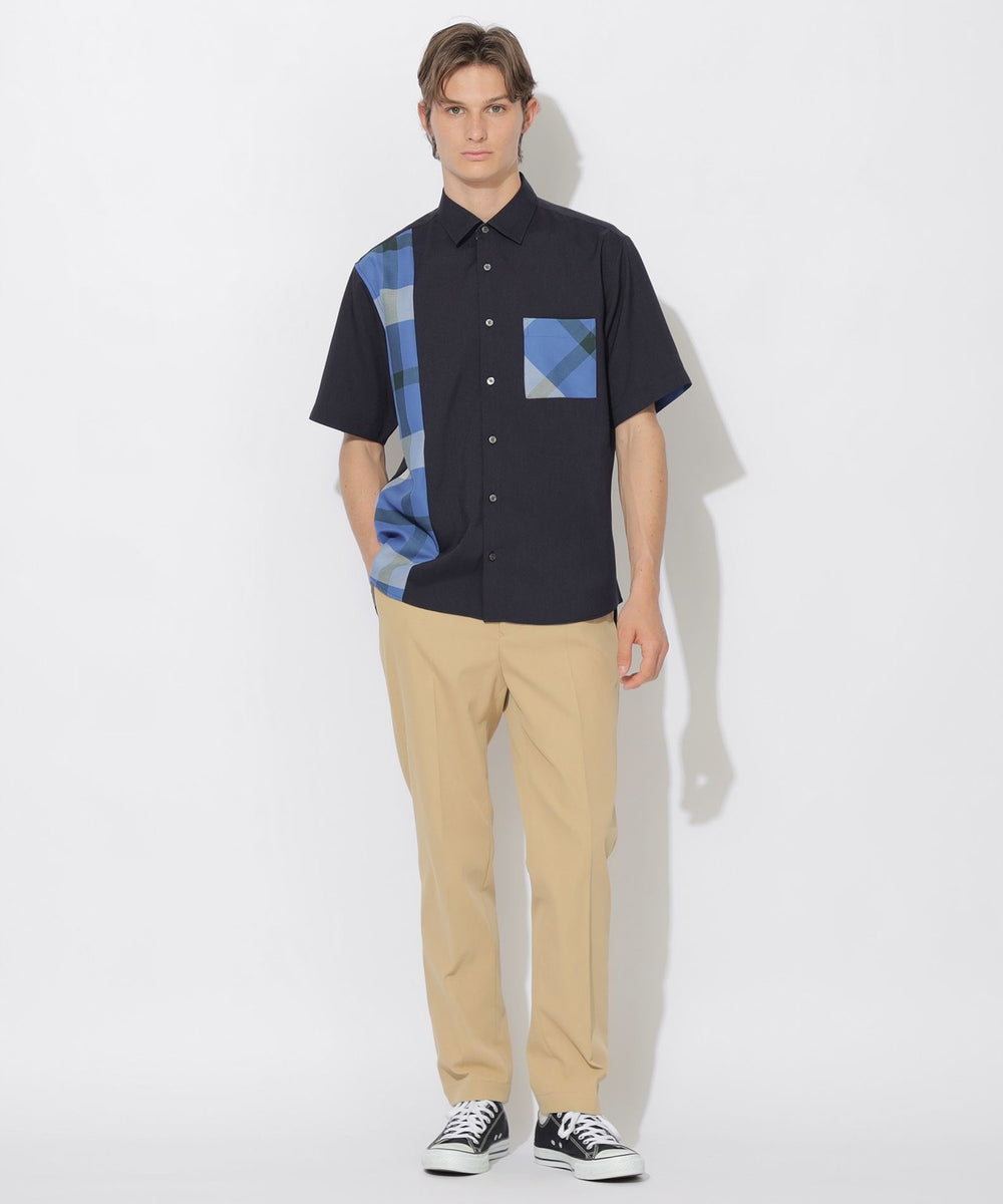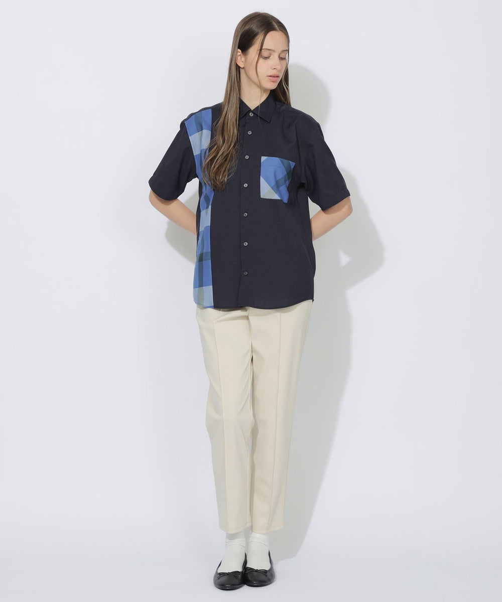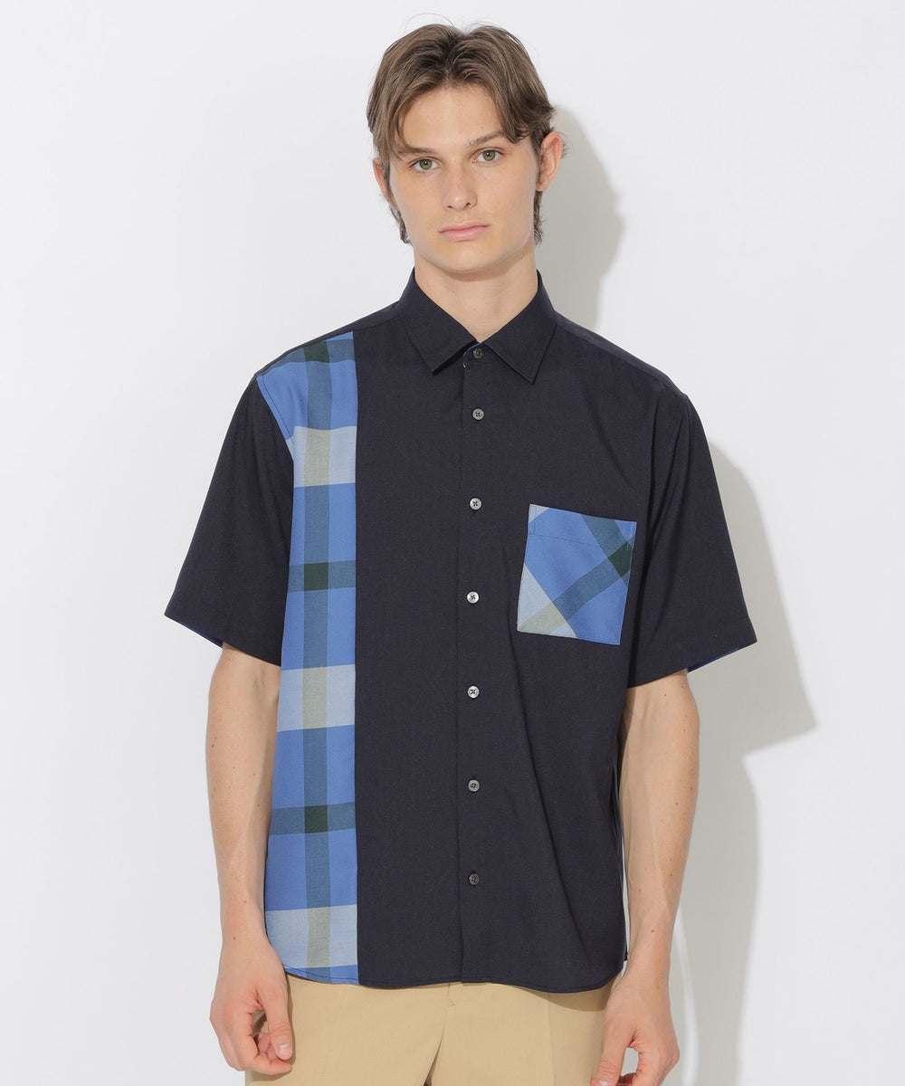 - パーシャルチェックハーフスリーブシャツ