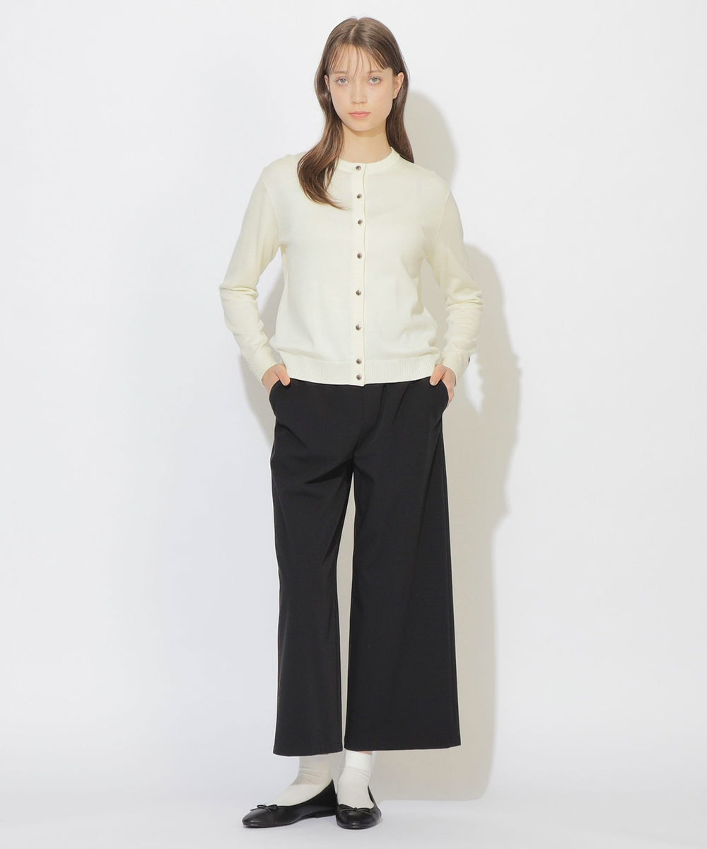着まわしやすさと上質感を兼ね備えたベーシックなクルーネックカーディガン。