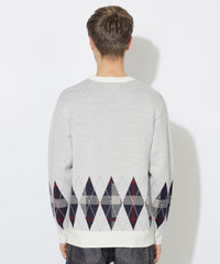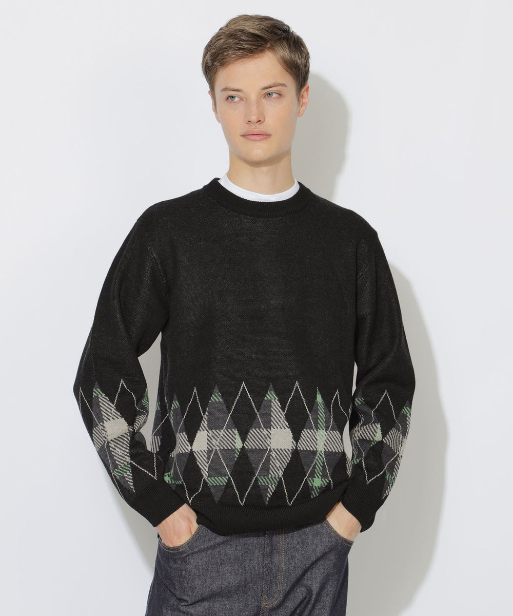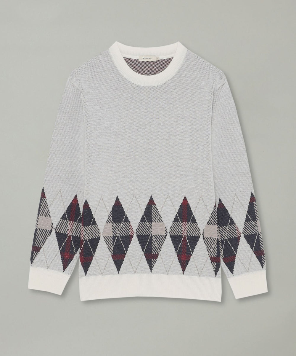 ブリティッシュトラッドを象徴するアーガイル柄に、クレストブリッジチェックを掛け合わせた新鮮な印象のジャガードニットです。