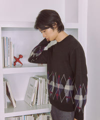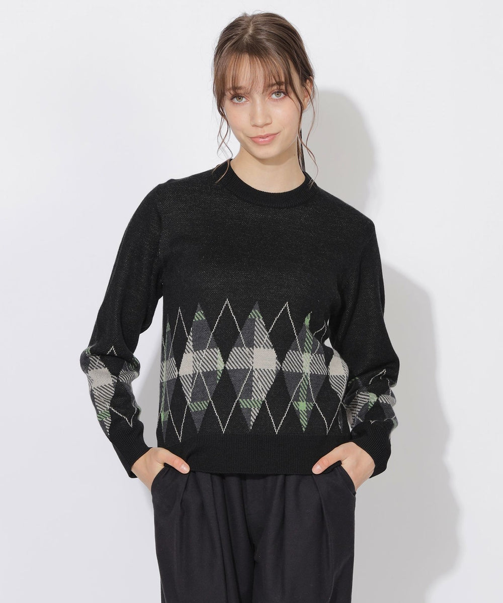 【アーガイル×チェックの上品ニットプルオーバー】