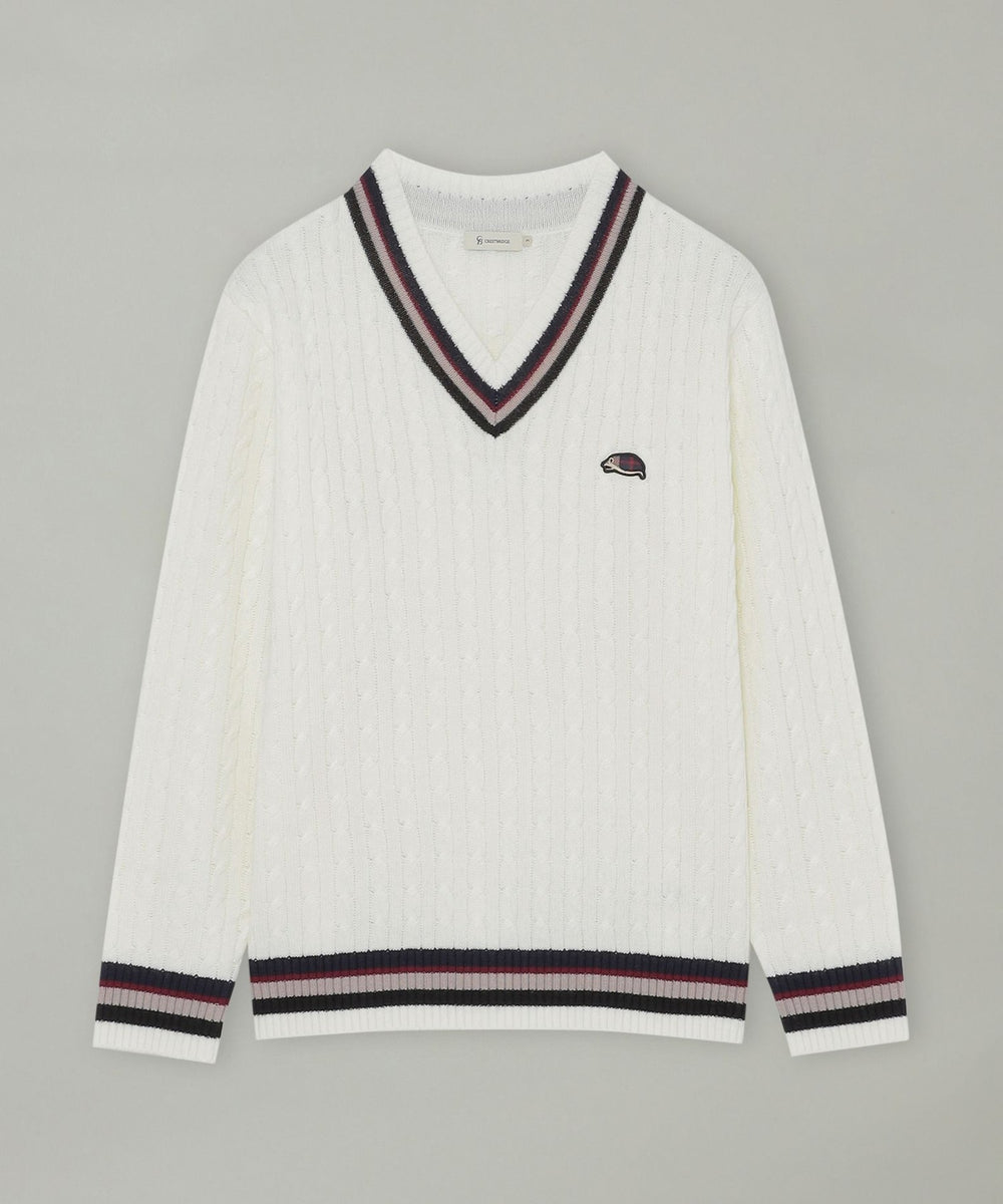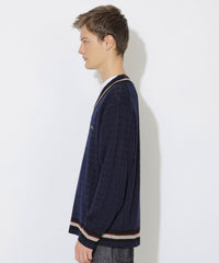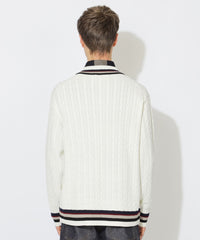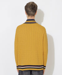 襟元・袖口・裾に効かせたストライプがアクセントのチルデンニットです。