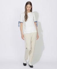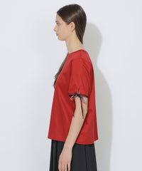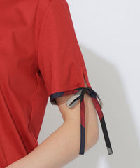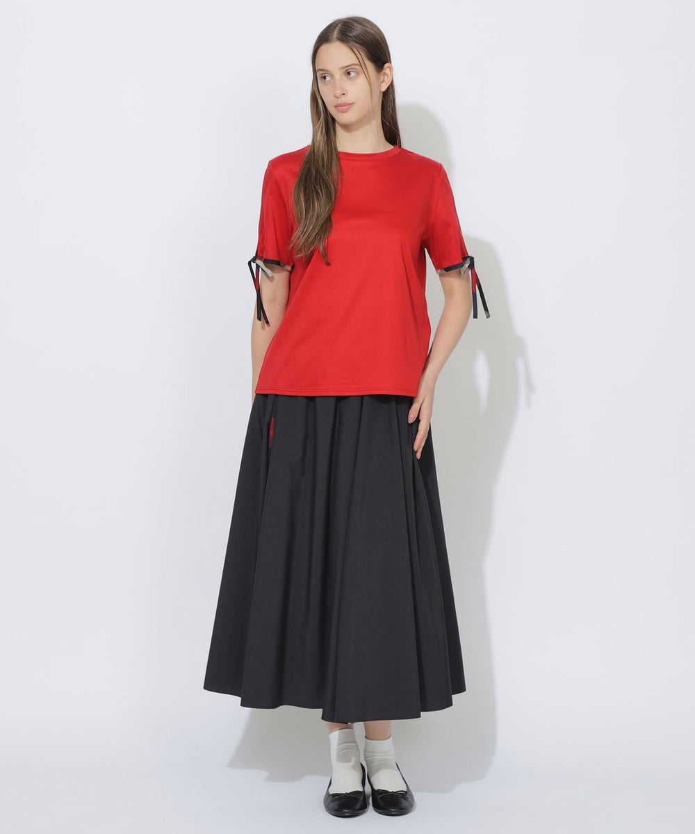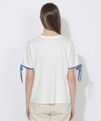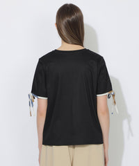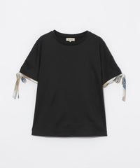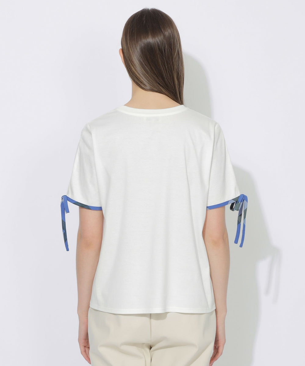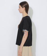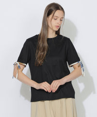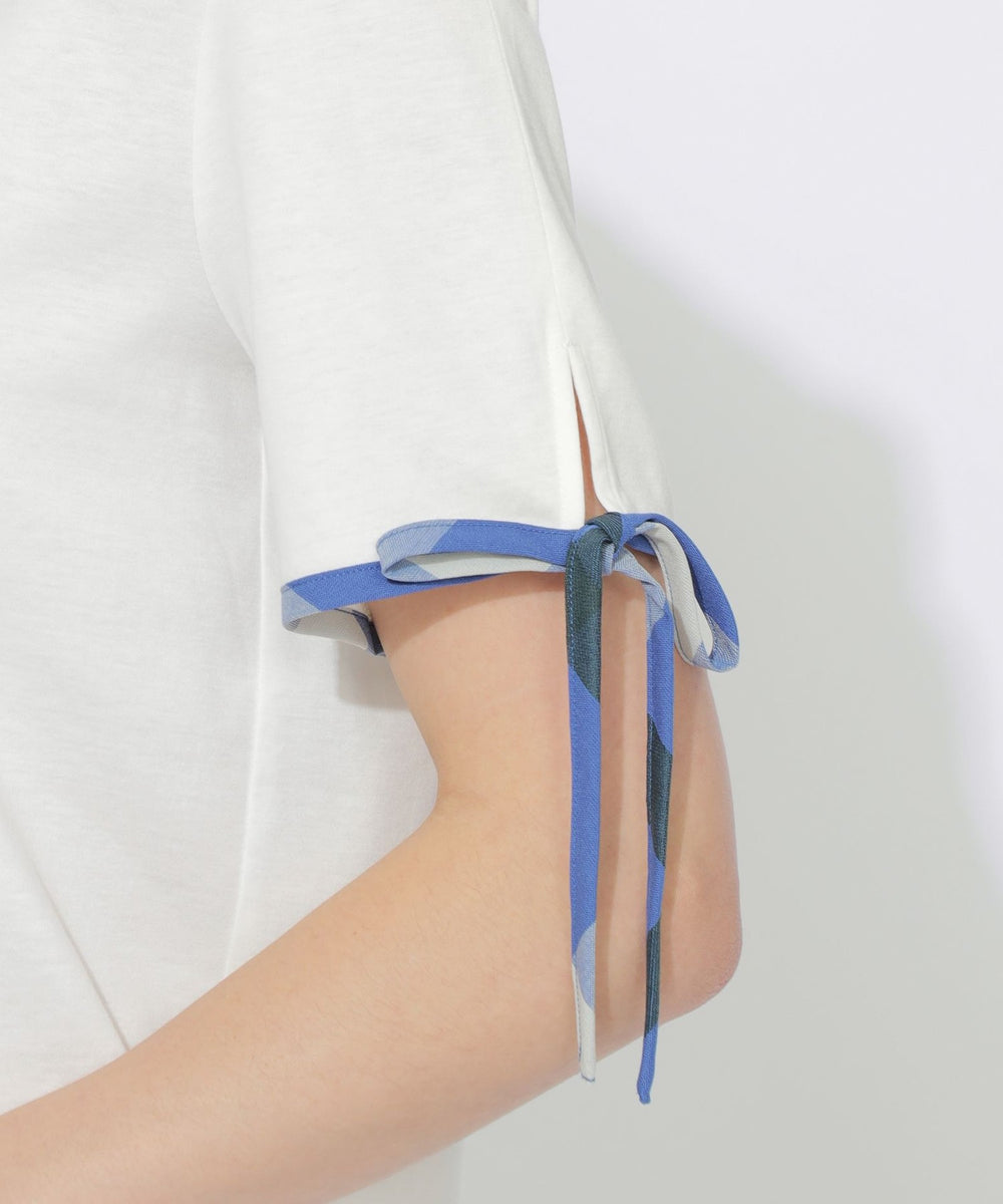 袖口にあしらった華奢なチェック柄リボンがポイントのTシャツ。