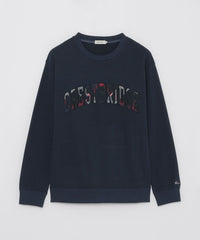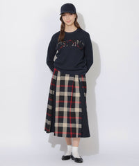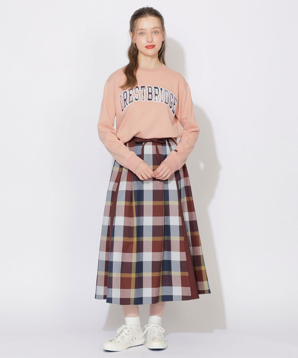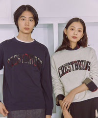 【 チェック×カレッジロゴが映える、ユニセックススウェットプルオーバー