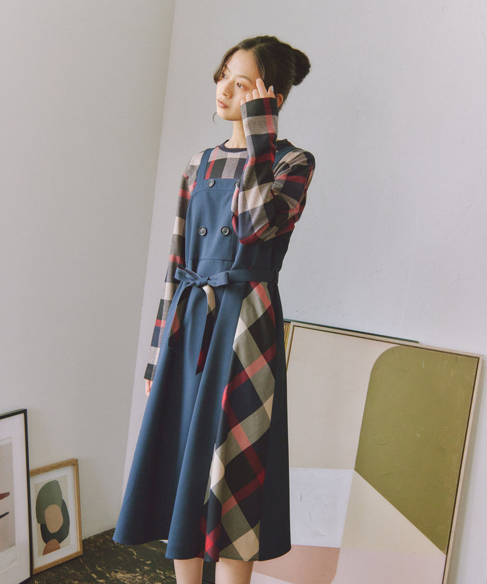 - サイドチェック切替トレンチキャミワンピース