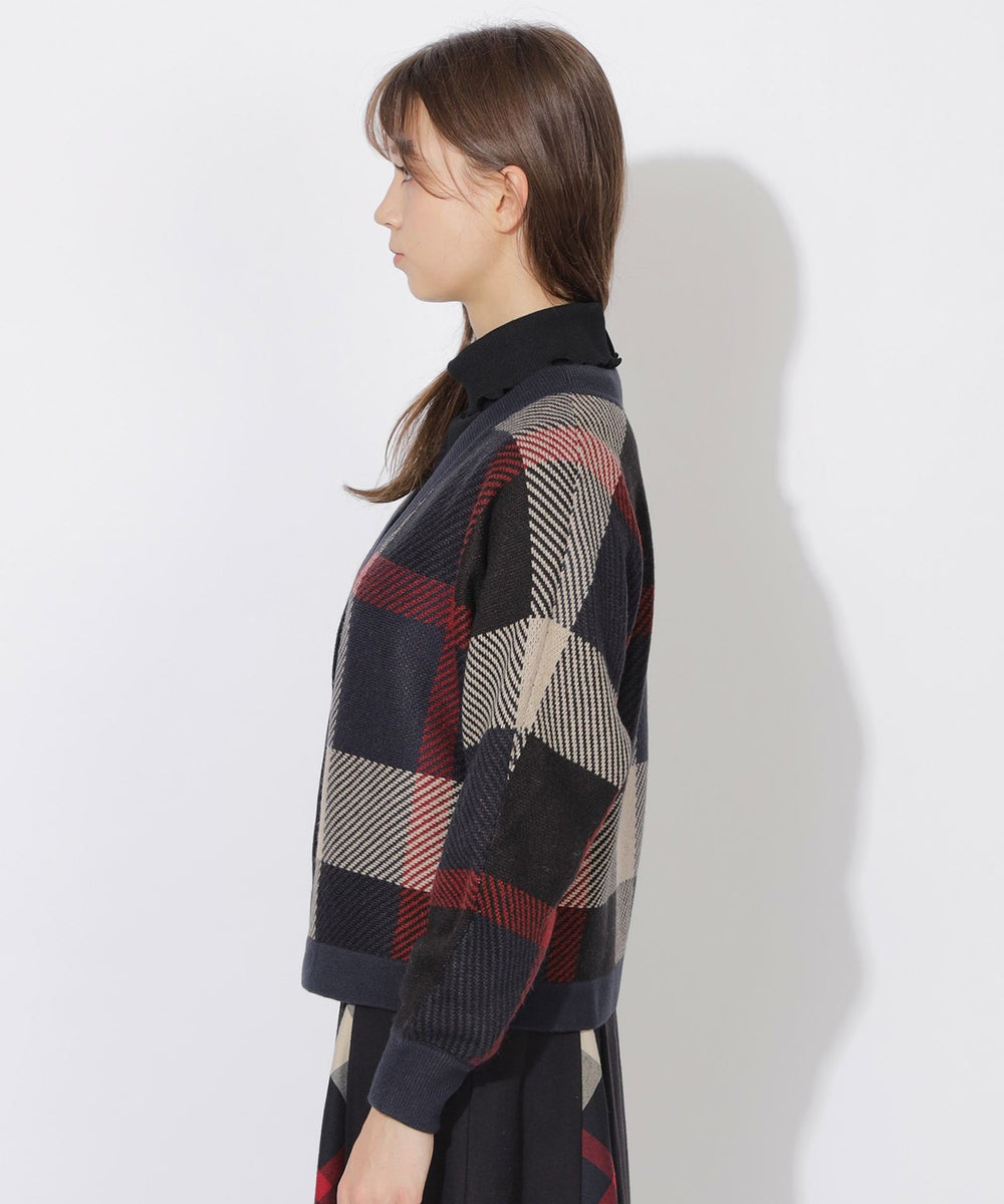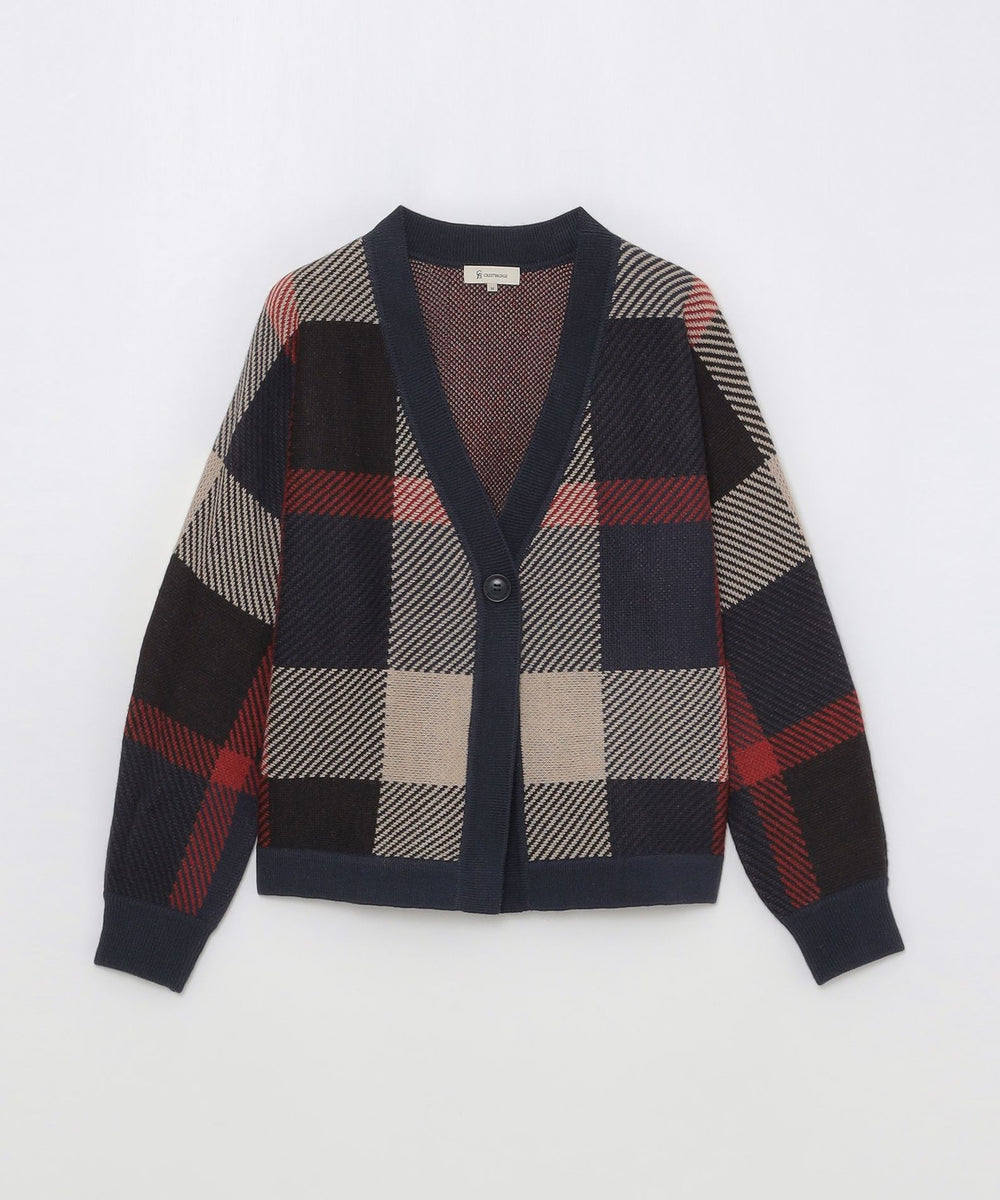 【ビッグチェックが華やぐ。存在感ニットカーディガン】