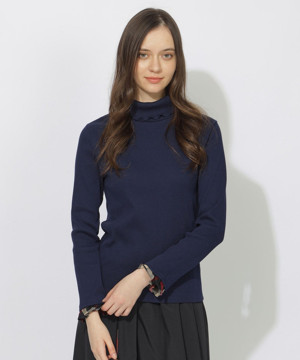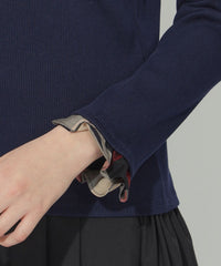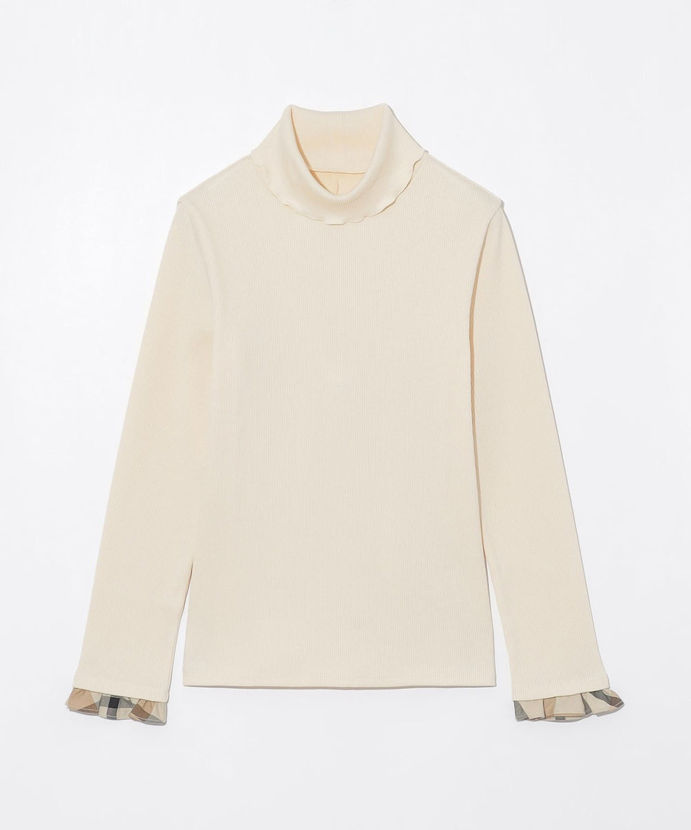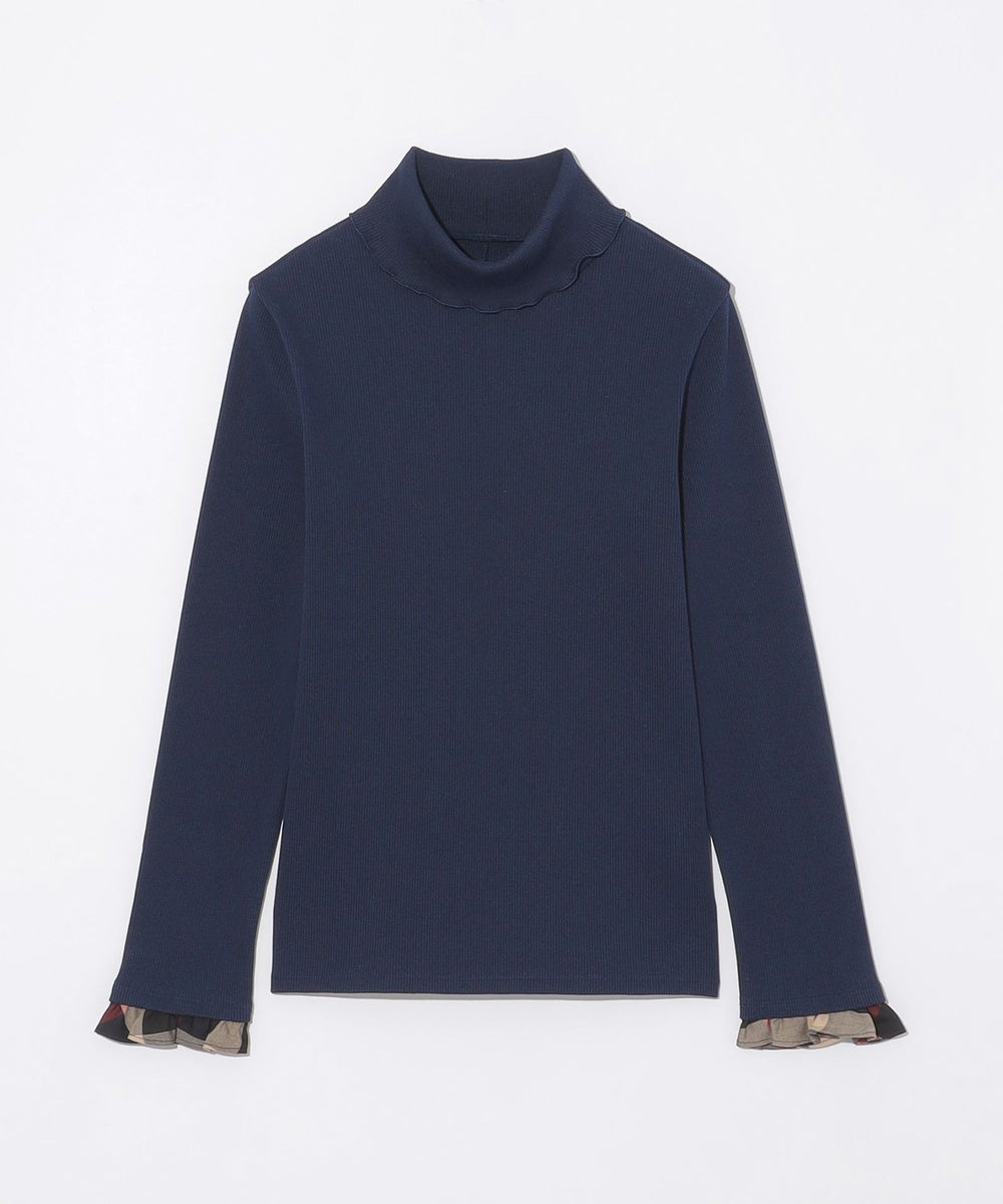 【着回し自在。袖口のチェックが映える万能タートル。】