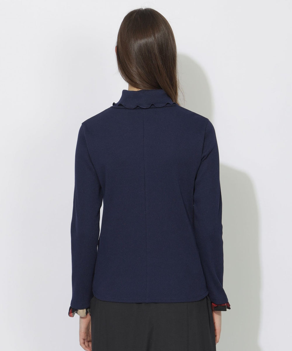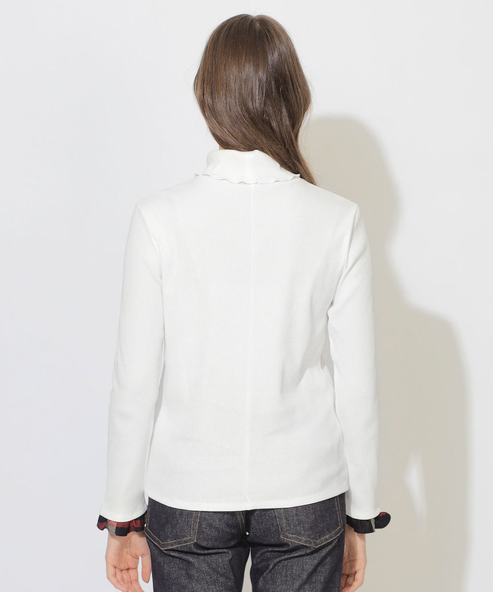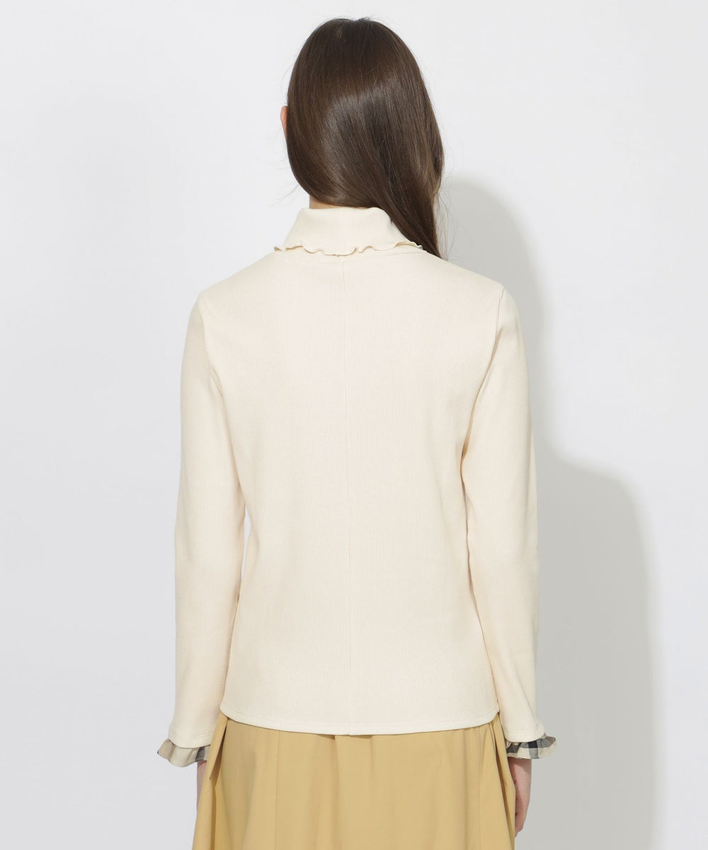 【着回し自在。袖口のチェックが映える万能タートル。】