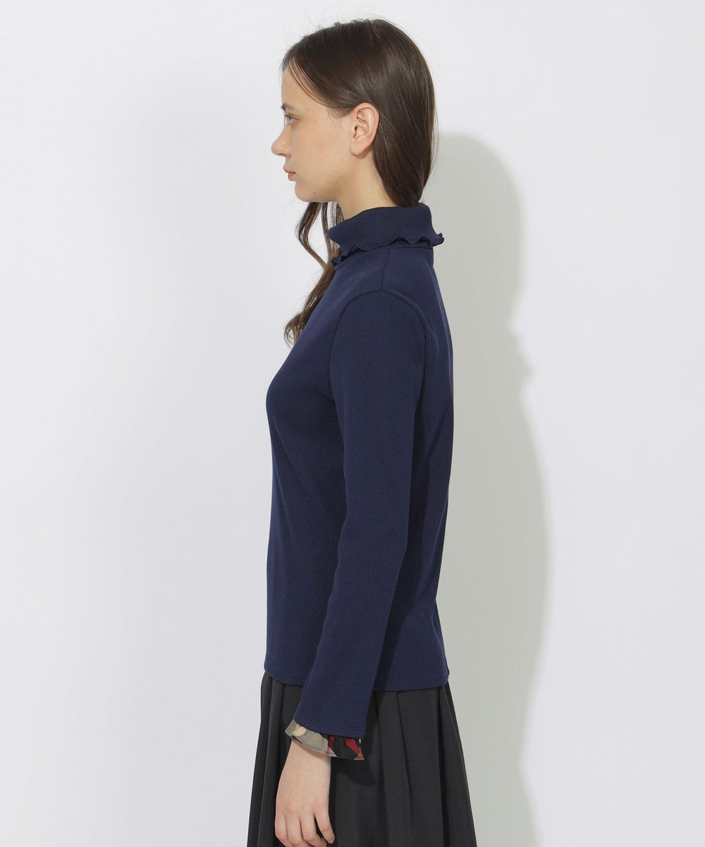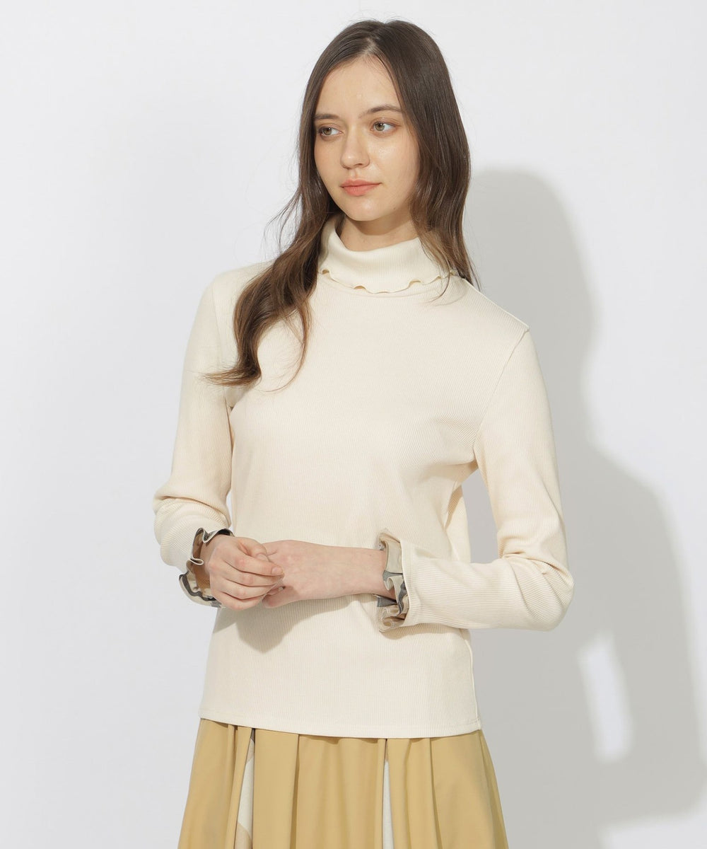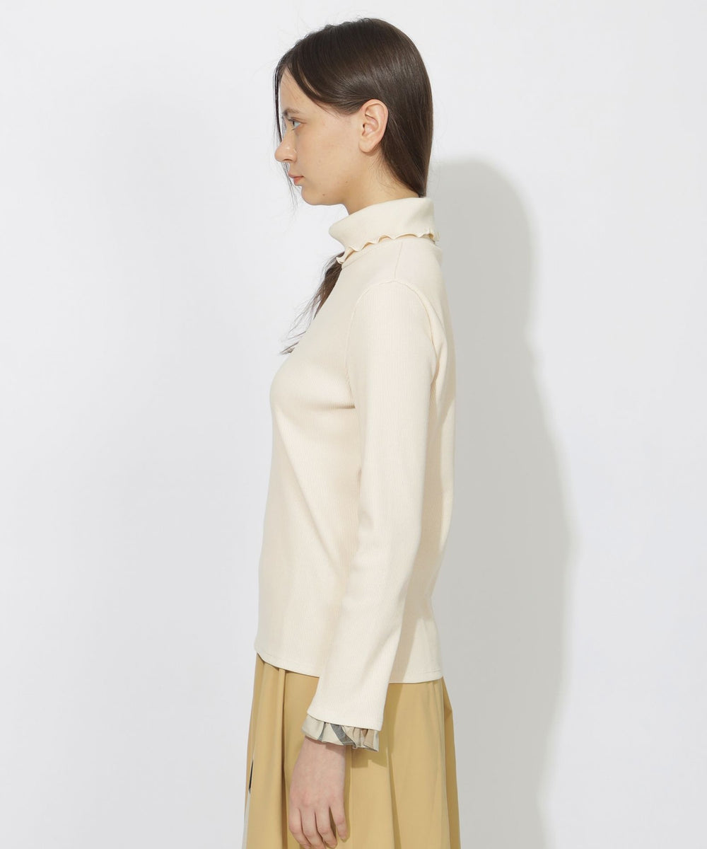 柔らかなリブカットソー素材で仕立てたタートルネックプルオーバーです。