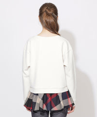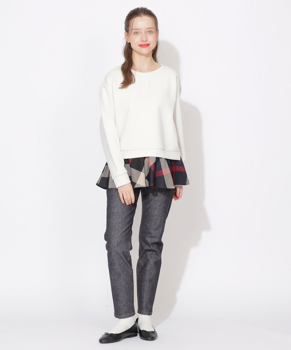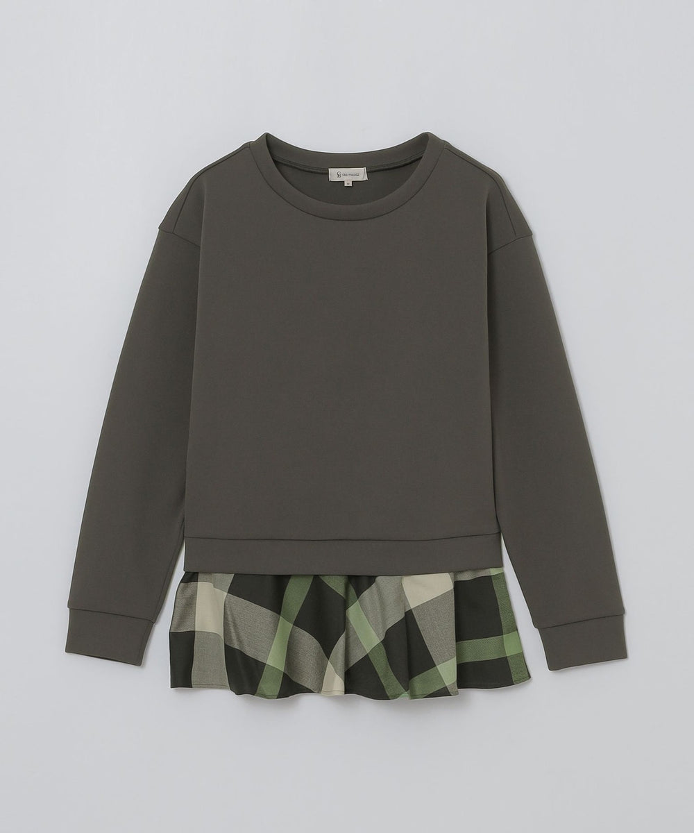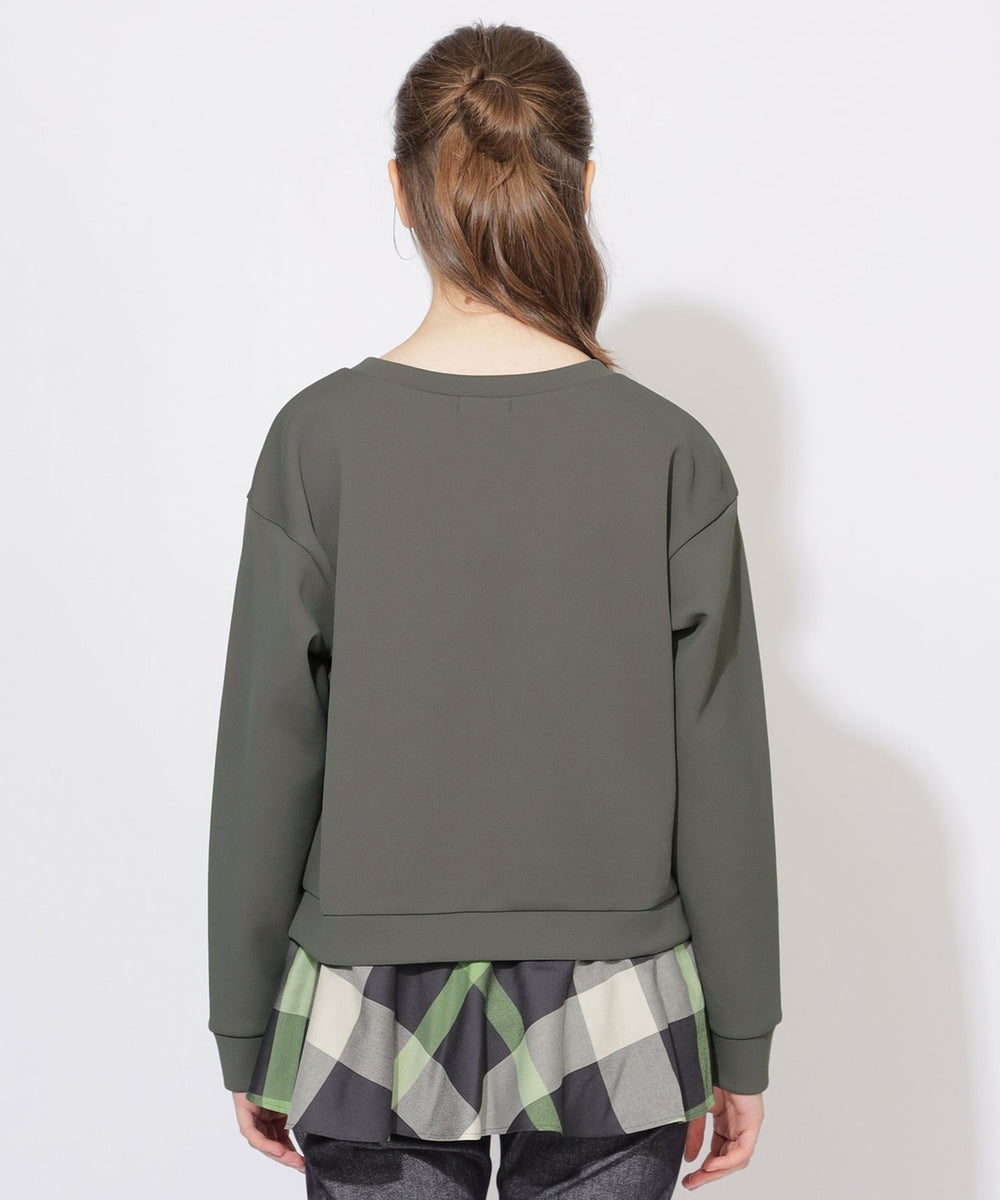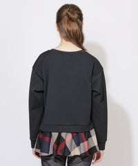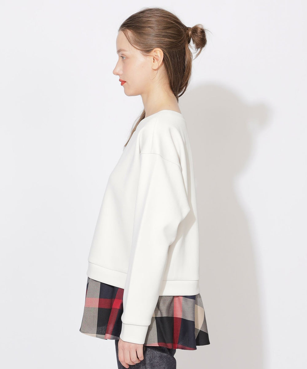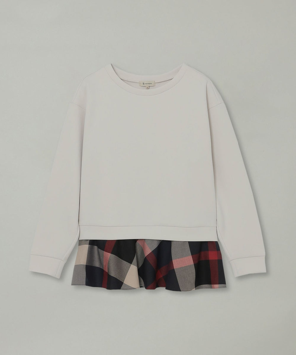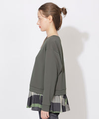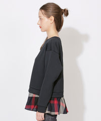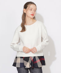 裾をクレストブリッジチェックで切り替えた、重ね着風のプルオーバーです。