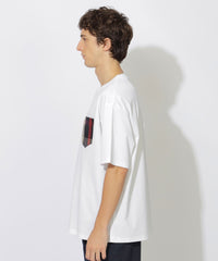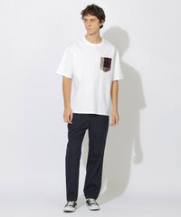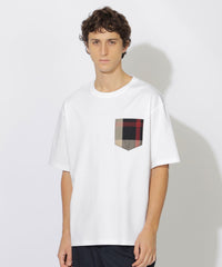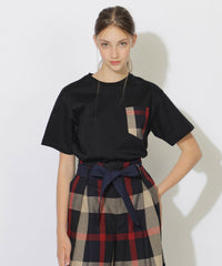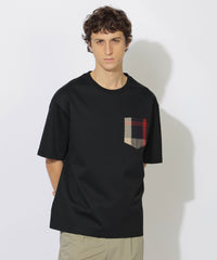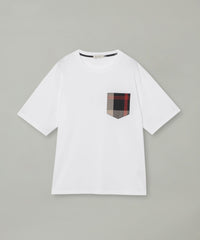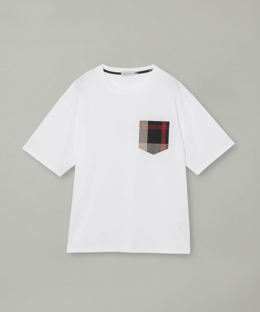 上品な素材感のボディに、繊細な織りで表現されたチェック柄のポケットが映えるTシャツです。